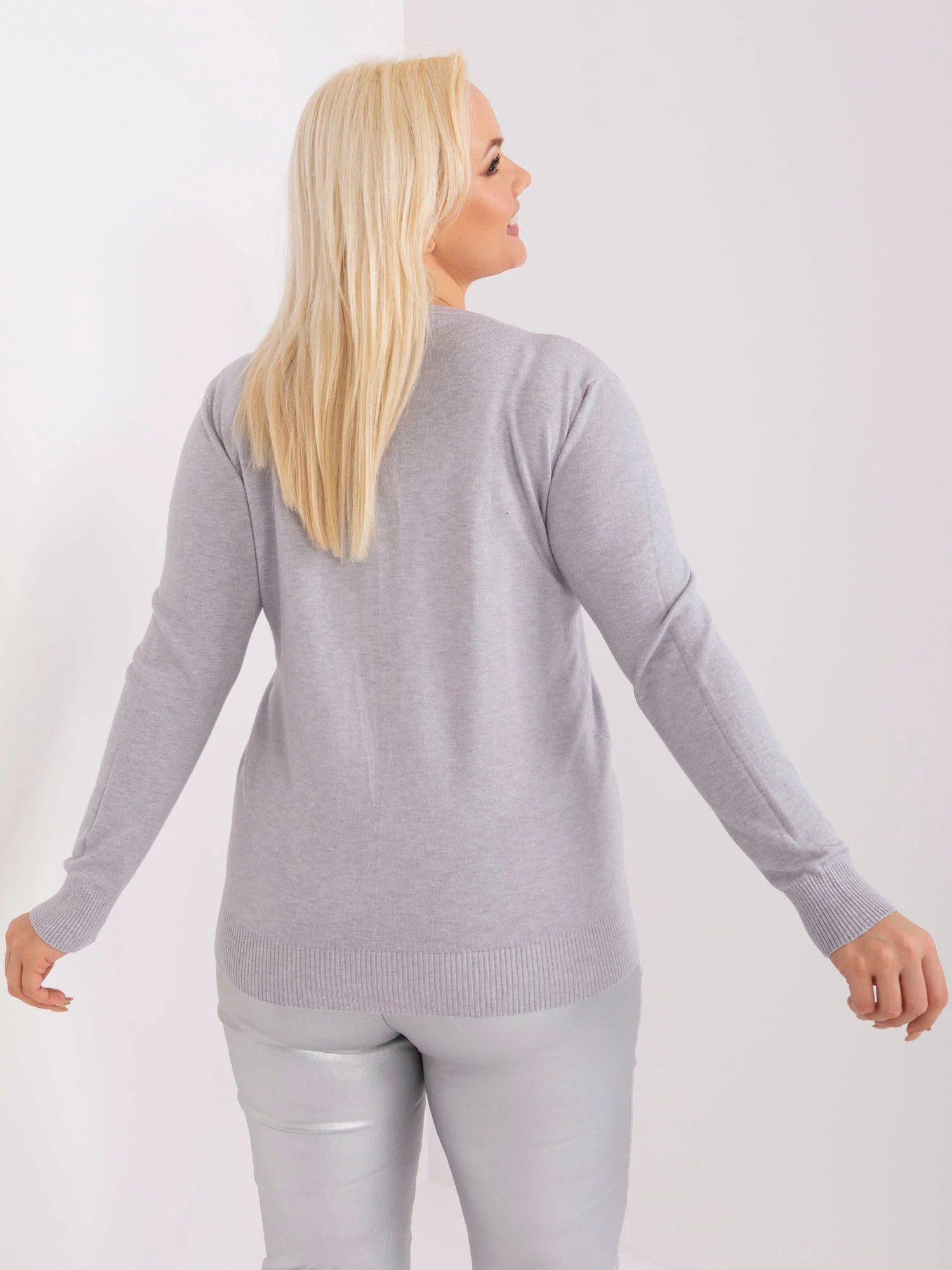 Rozměry svetru ve velikosti XL/XXL měřené na plocho: šířka v podpaží - 51 cm, délka rukávu - 61 cm, celková délka - 63 cm.