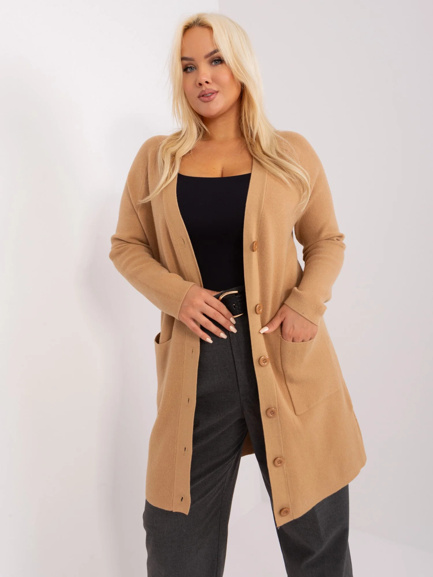 Velbloudí dlouhý svetr plus size.