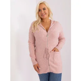 Světle růžový rozepínací svetr plus size s viskózou .