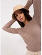 Tmavě béžový pruhovaný klasický svetr .