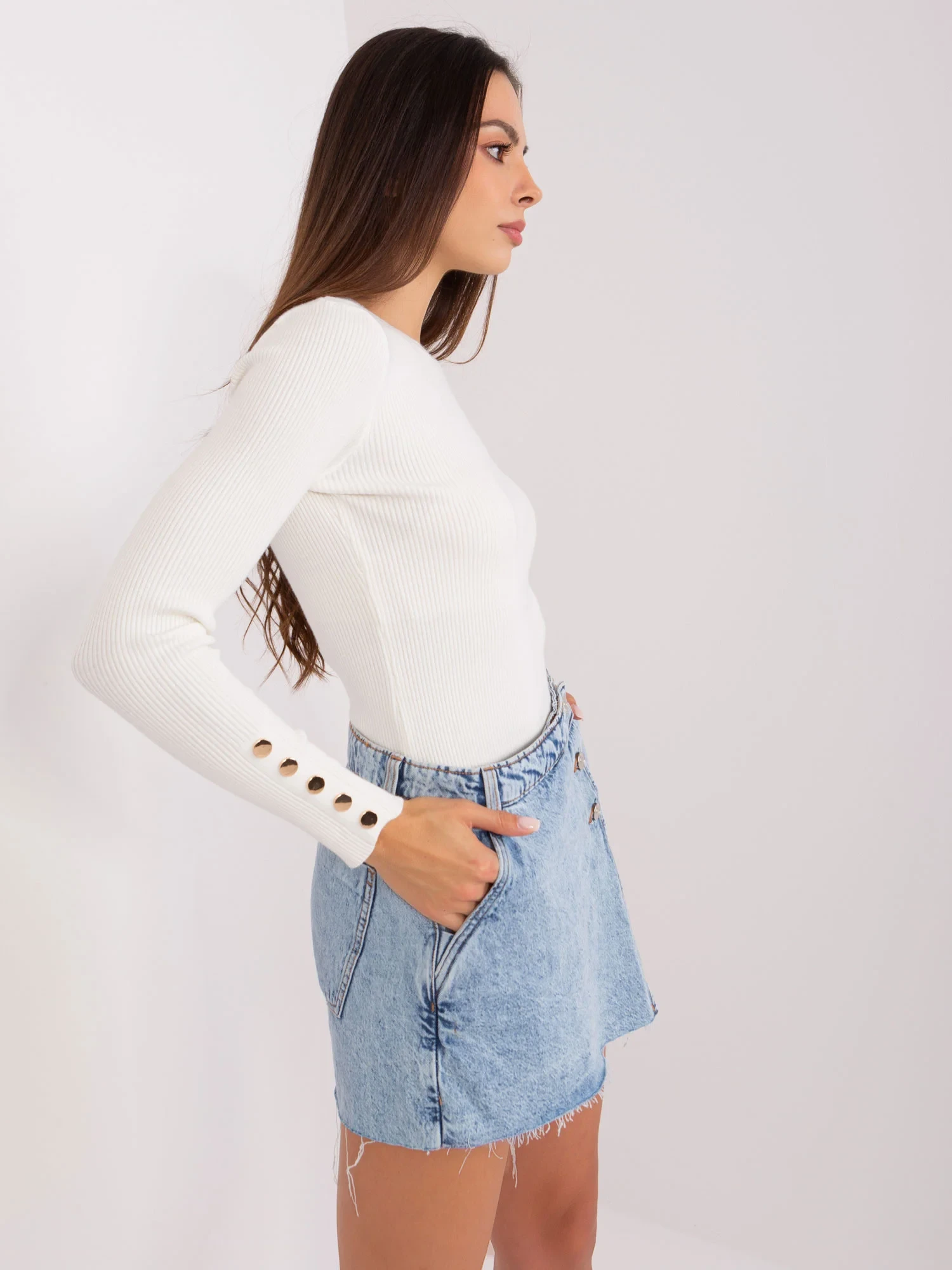 Klasický svetr v barvě ecru s kulatým výstřihem .