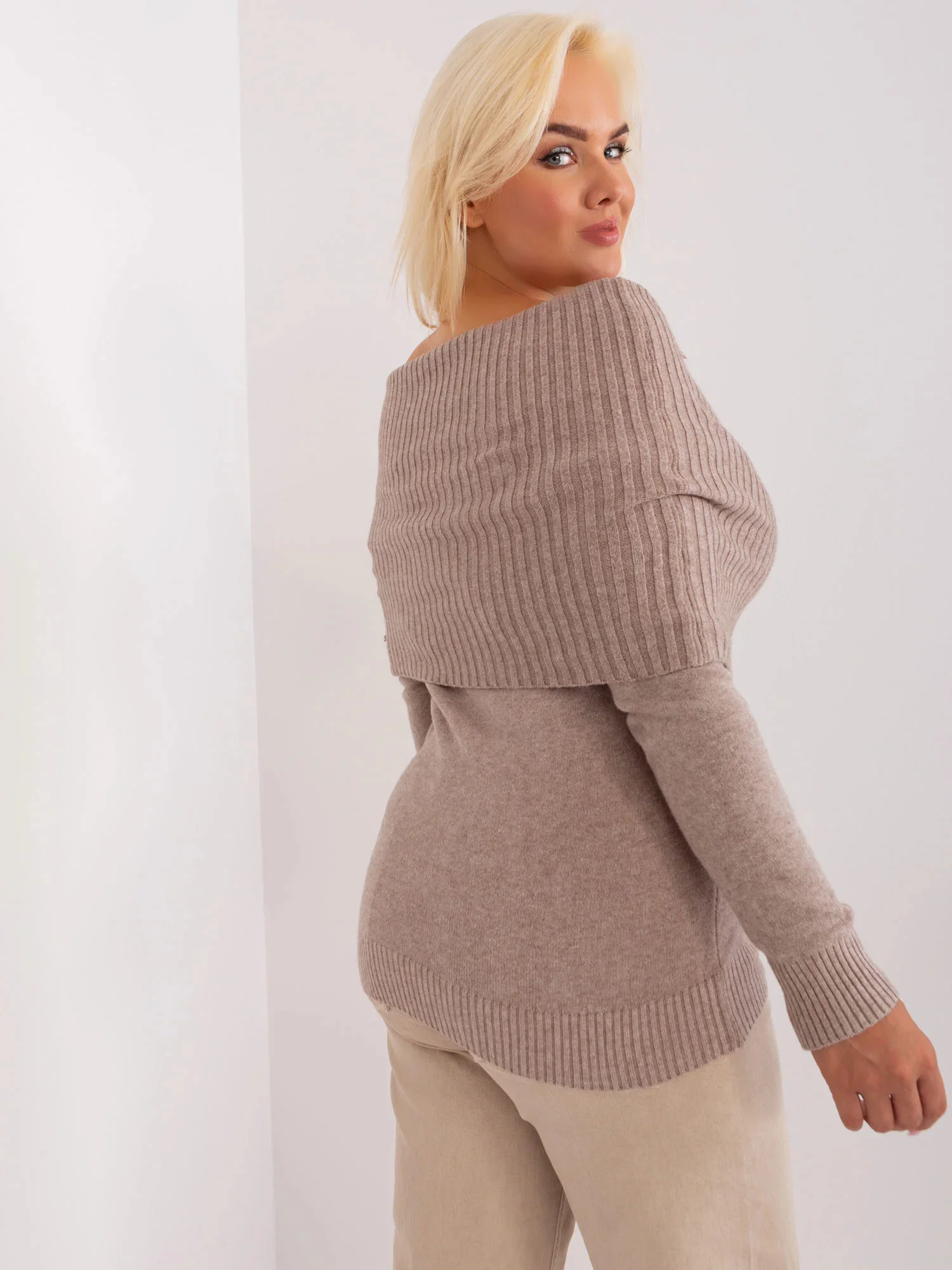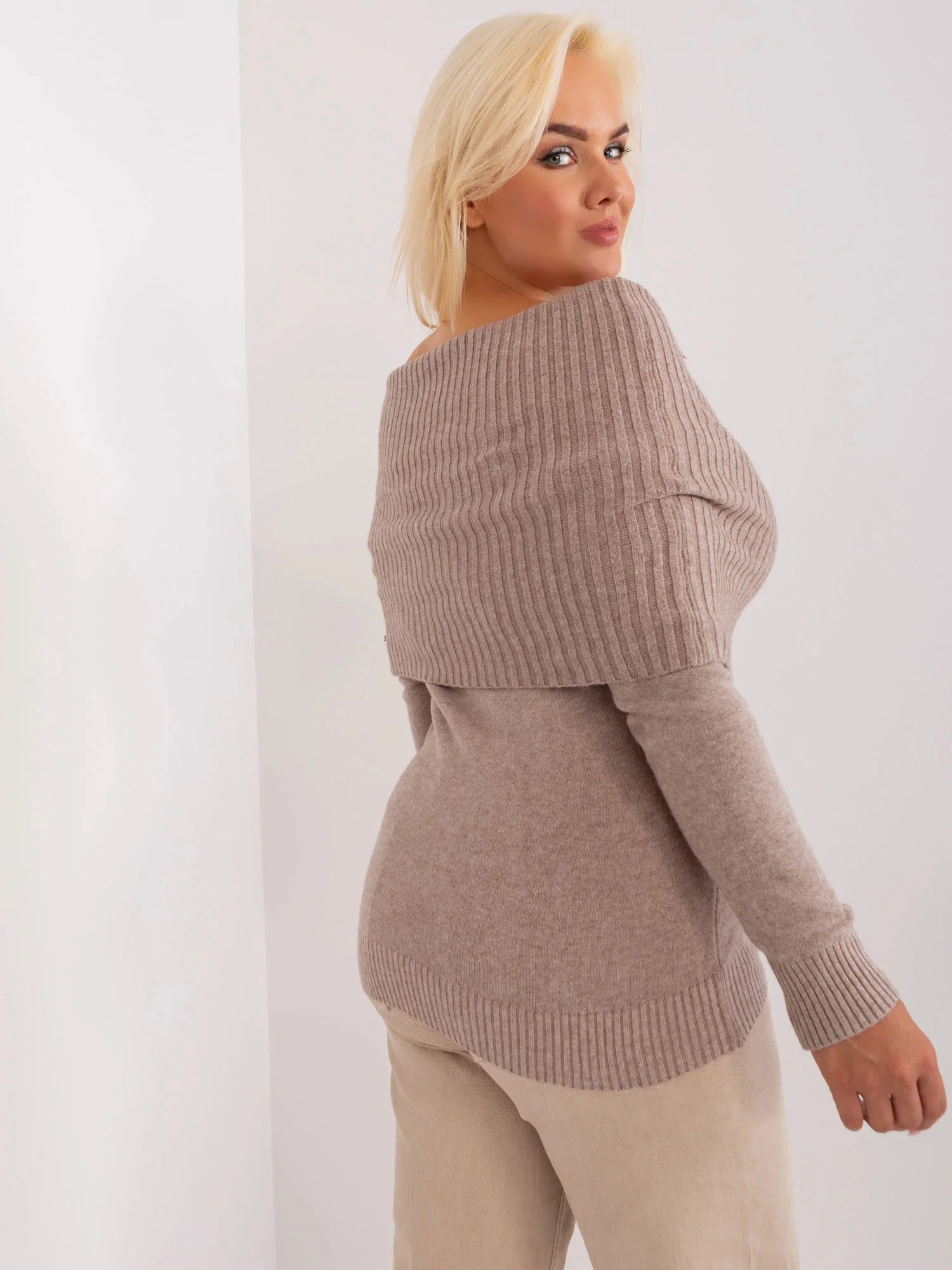 Tmavě béžový dámský plus size svetr s viskózou .