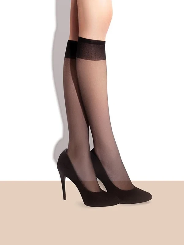Tenké elegantní podkolenky značky Fiore. 2 kusy v sadě. 86 % polyamid, 14 % elastan. Tloušťka: 20 DEN.