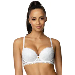 Podprsenka značky Mat, model Estelle 0198/11/1. Má drátky, které podporují prsa a vhodně je tvarují. Výrobek má nastavitelná ramínka bez možnosti jejich odepnutí. Zapínání na háčky. Místo zapínání: na zádech. 2 řady svislých háčků. 3 úrovně vodorovných háčků. Výrobek je vyroben z 29 % polyamidu, 26 % bavlny, 24 % polyesteru, 18 % polyuretanu, 3 % elastanu. Výrobek má kapsy na vložky. Dámský výrobek.