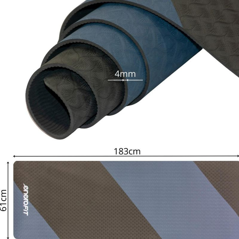 Podložka ENERO FIT TPE ANTI-SLIP YOGA AND FITNESS v černo-modré barvě je dokonalou kombinací funkčnosti, stylu a pohodlí - ať už chcete trénovat kdekoli.