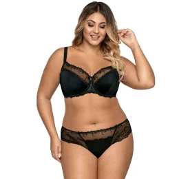 Senzační poloměkká podprsenka, která je ve výstřihu zakončena průhledným vyšívaným tylem. Spodní část košíčků je hladká, lehce perleťová, s podšívkou. Podprsenka díky své dokonalé konstrukci dokonale shromažďuje a tvaruje prsa, díky čemuž je výstřih mimořádně ženský. Složení: 88 % polyamid, 8 % bavlna, 4 % elastan.