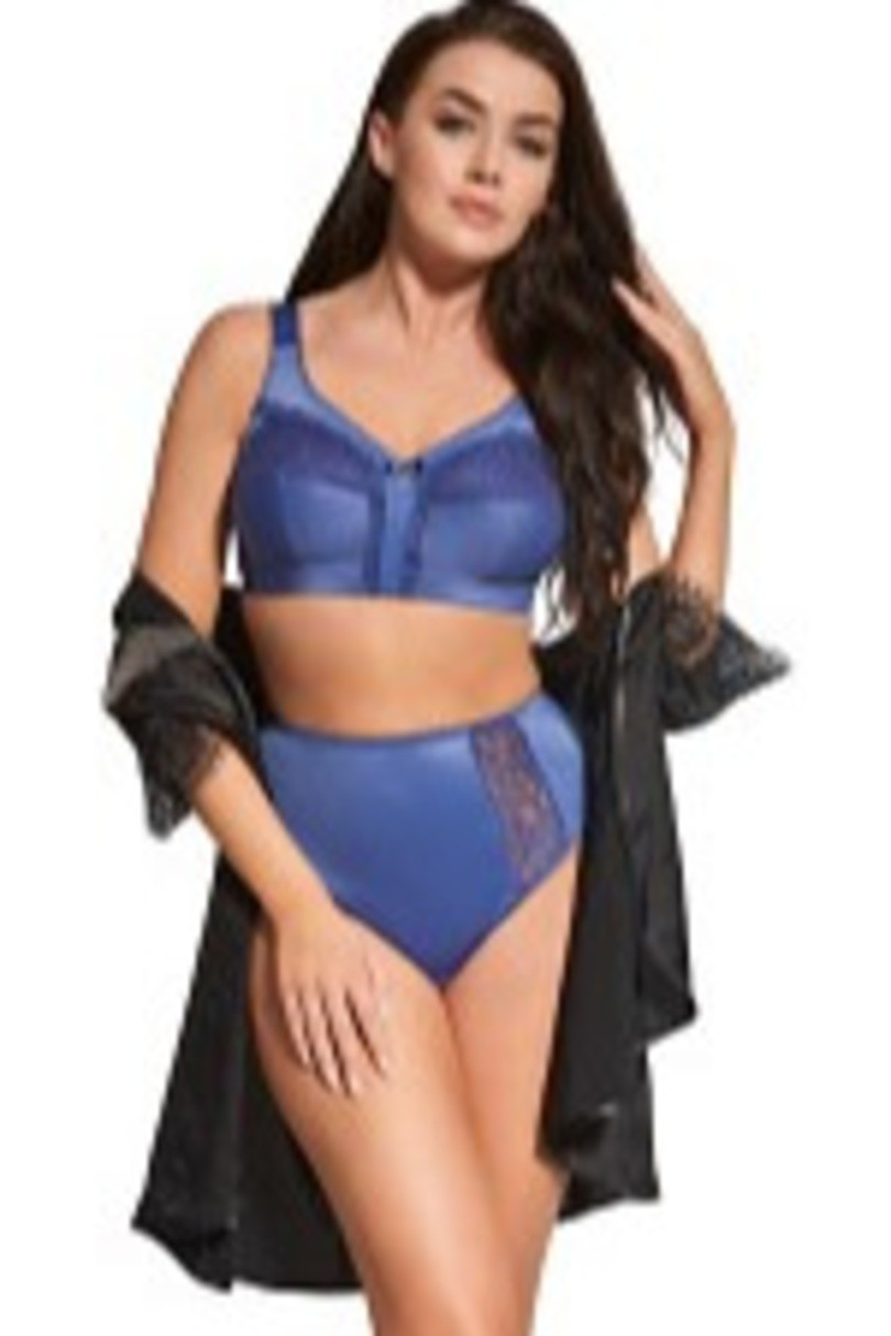 Biustonosz Irena 585 to elegancka i wygodna propozycja dla kobiet z większym, pełnym biustem. Wykonany z miękkich, przyjemnych w dotyku materiałów, bez fiszbin – gwarantuje komfort noszenia przez cały dzień. W górnej części miseczek znajduje się delikatna, ażurowa koronka z subtelnym, transparentnym podszyciem, która nadaje modelowi lekkości i kobiecego uroku. Ozdobna satynowa kokardka i srebrny element biżuteryjny umieszczony między miseczkami przyciągają wzrok i dodają stylu. Szerokie ramiączka oraz trzystopniowe zapięcie na trzy haftki zapewniają stabilność i wygodę – nawet przy większym rozmiarze biustu.