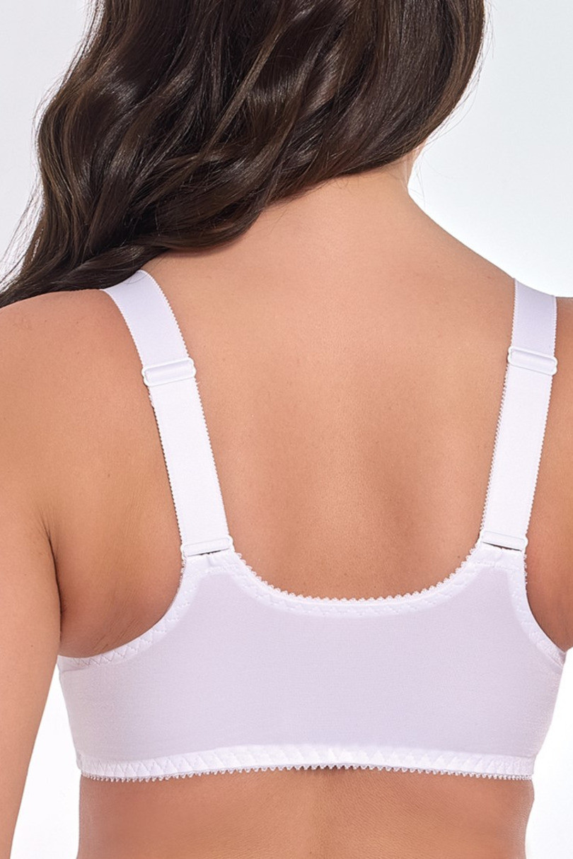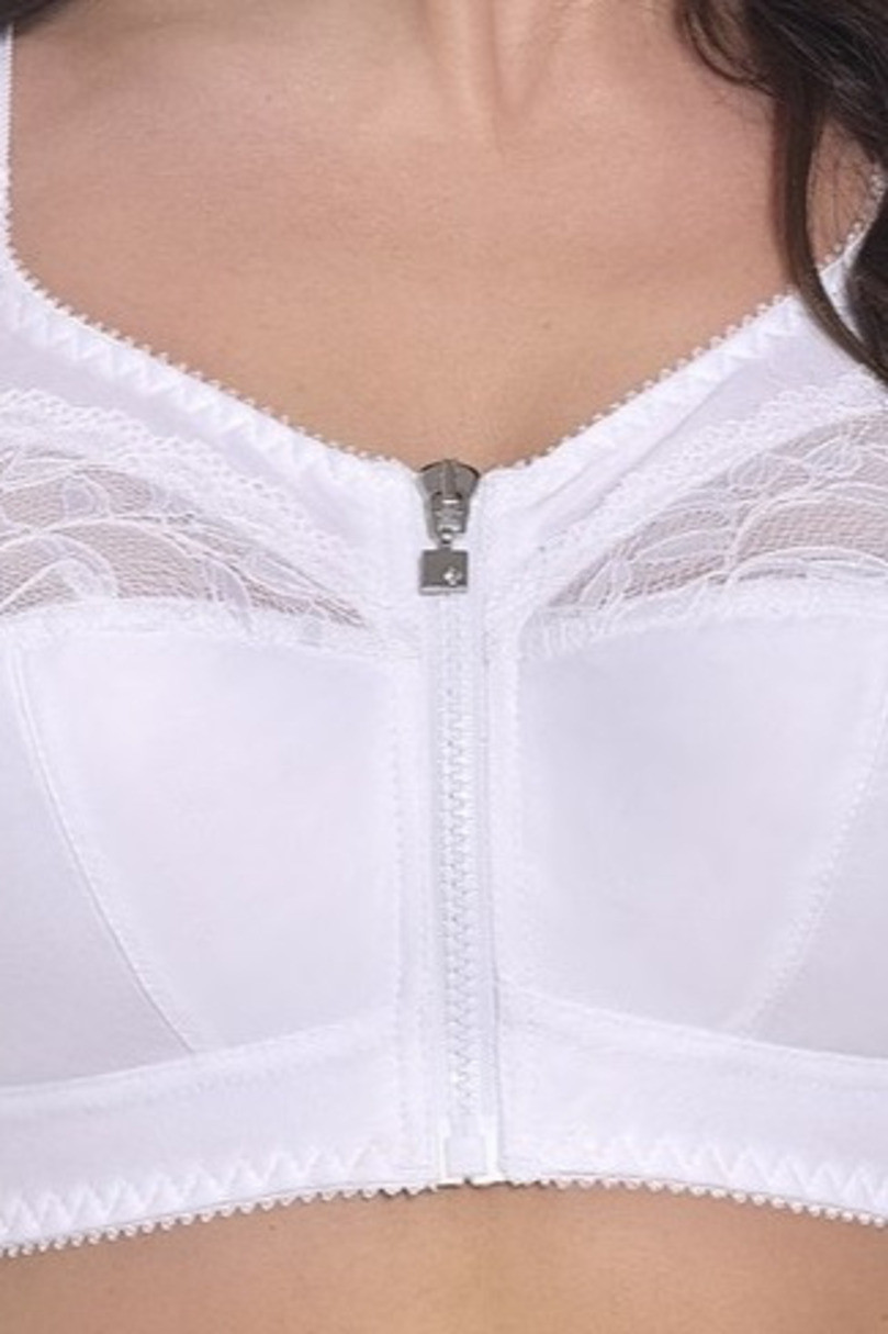 Biustonosz VIKI Zuza 1 586 w rozmiarze 100–105 to idealne rozwiązanie dla kobiet z pełniejszym biustem, które nie chcą rezygnować z wygody i elegancji. Model typu soft bez fiszbin zapewnia naturalne podtrzymanie bez ucisku, a szerokie, regulowane ramiączka dbają o komfort przez cały dzień.Delikatna koronka na miseczkach dodaje kobiecego uroku, natomiast praktyczne zapięcie z przodu na zamek ułatwia zakładanie, zwłaszcza w sytuacjach pooperacyjnych lub w okresie karmienia piersią. Starannie dobrany skład materiału – przewiewny poliamid, elastyczny elastan i oddychająca bawełna – zapewnia wygodę noszenia nawet przy większym rozmiarze.