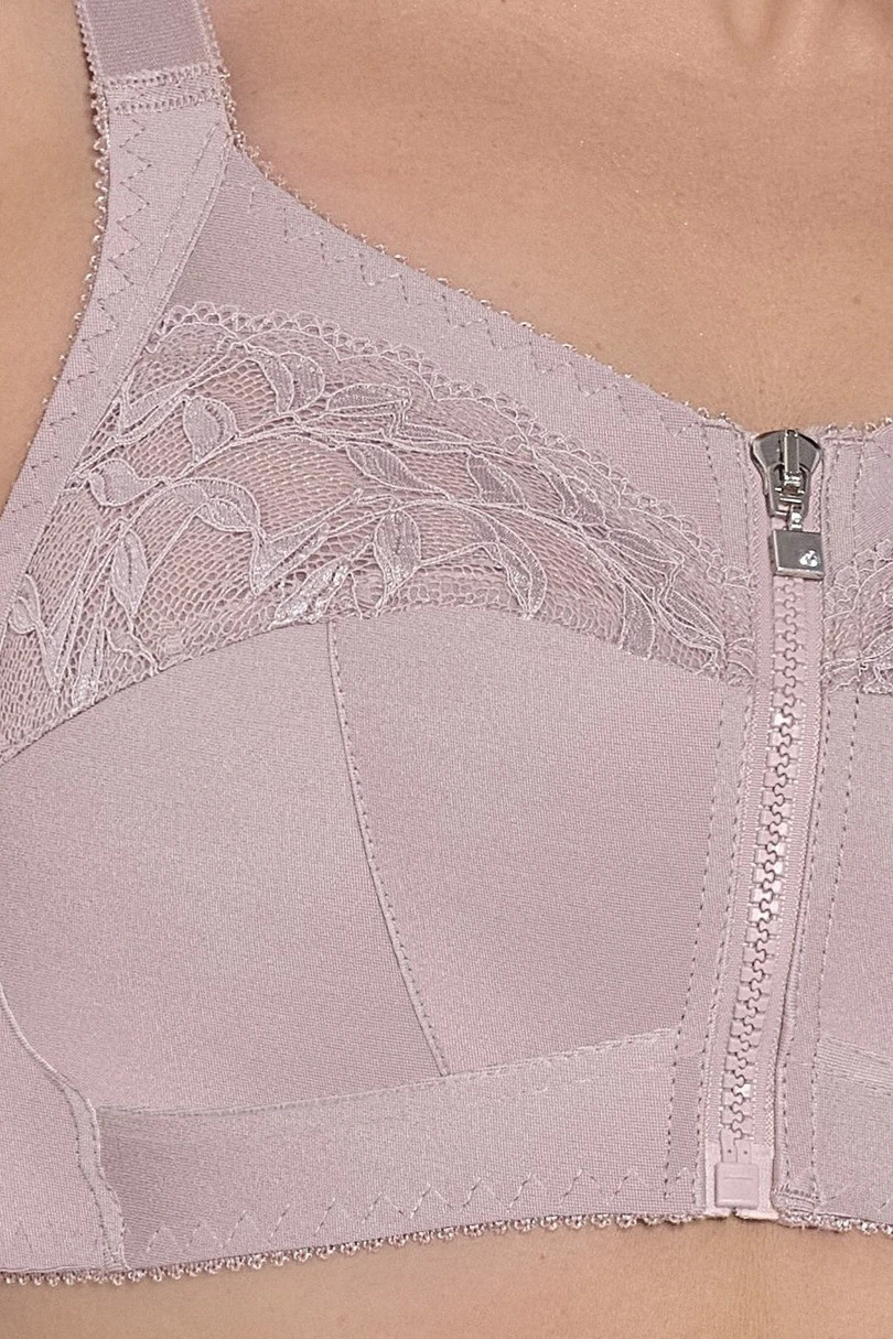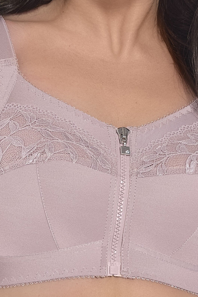 Biustonosz Zuza 586 to idealna propozycja dla Pań z pełniejszym biustem, które cenią sobie komfort, wygodę i subtelną kobiecość. Model wykonany z miękkiego materiału bez fiszbin gwarantuje swobodę ruchów oraz doskonałe dopasowanie. Zapięcie z przodu na zamek ułatwia zakładanie i zdejmowanie, a delikatna koronka z prześwitującą podszewką w górnej części dodaje uroku i lekkości. Szerokie, stabilne ramiączka oraz bawełniana lamówka zabezpieczająca szwy sprawiają, że biustonosz nie uciska i nadaje się do codziennego noszenia przez wiele godzin.
