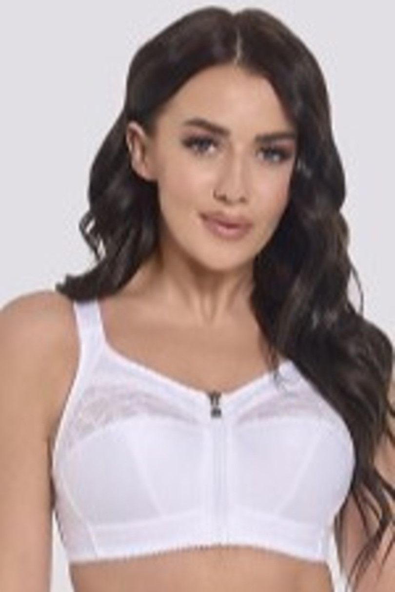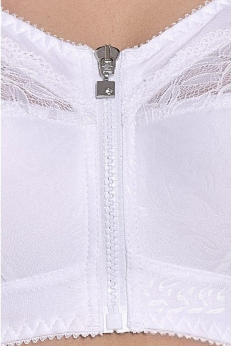 Biustonosz Zuza 586 to idealna propozycja dla Pań z pełniejszym biustem, które cenią sobie komfort, wygodę i subtelną kobiecość. Model wykonany z miękkiego materiału bez fiszbin gwarantuje swobodę ruchów oraz doskonałe dopasowanie. Zapięcie z przodu na zamek ułatwia zakładanie i zdejmowanie, a delikatna koronka z prześwitującą podszewką w górnej części dodaje uroku i lekkości. Szerokie, stabilne ramiączka oraz bawełniana lamówka zabezpieczająca szwy sprawiają, że biustonosz nie uciska i nadaje się do codziennego noszenia przez wiele godzin.