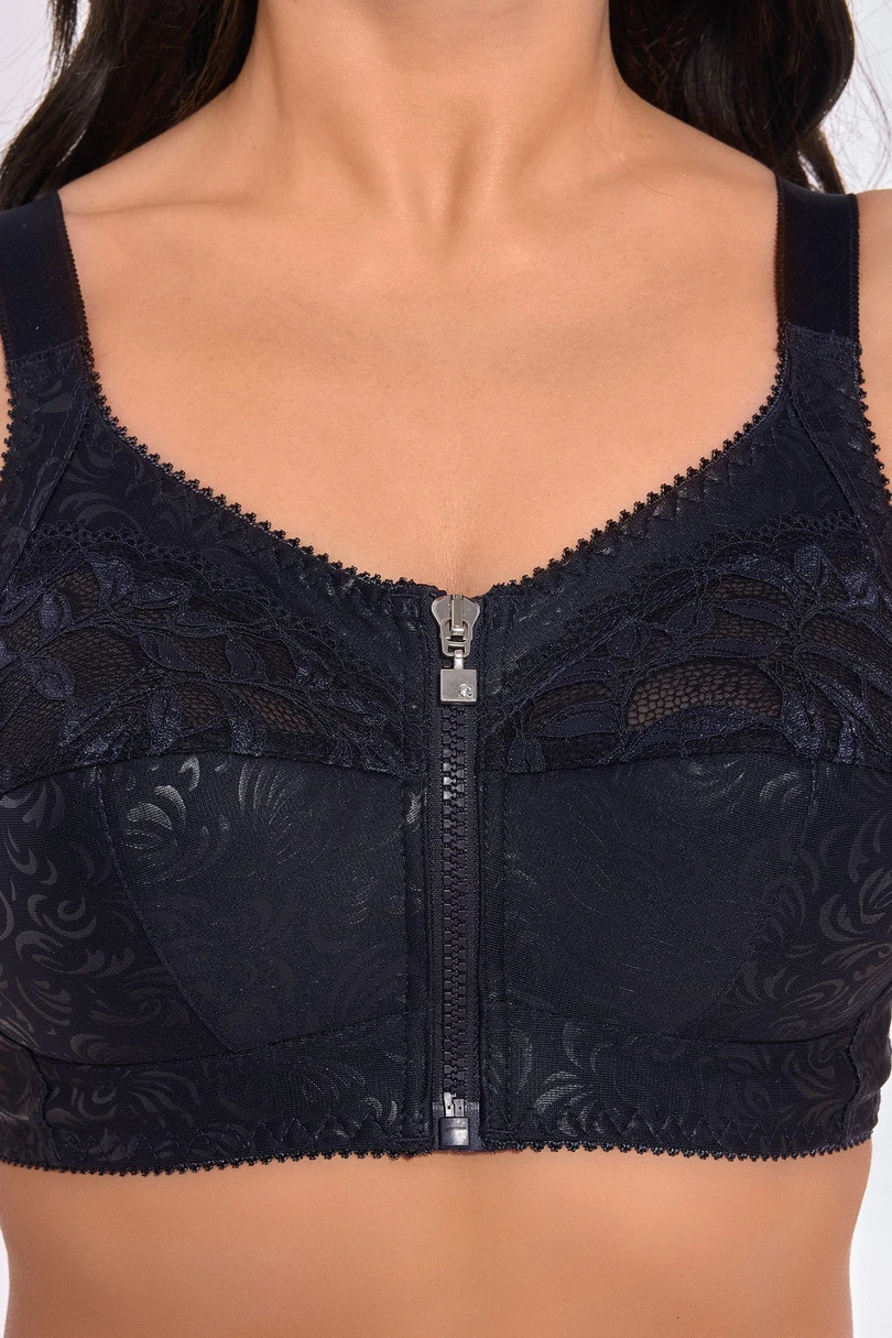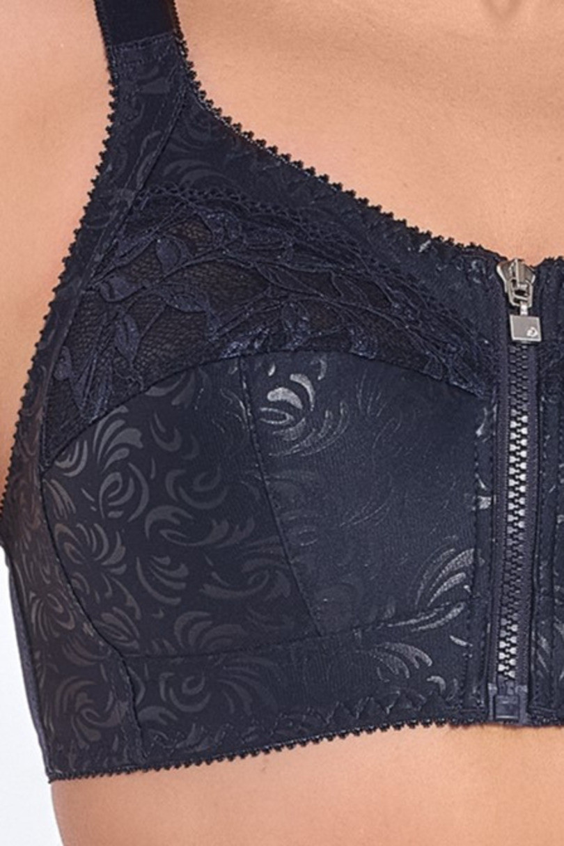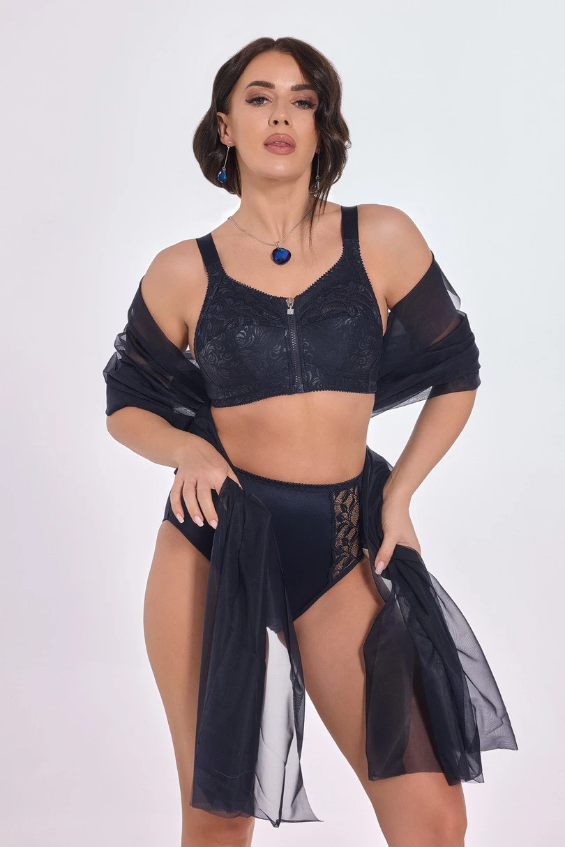 Biustonosz Zuza 586 to idealna propozycja dla Pań z pełniejszym biustem, które cenią sobie komfort, wygodę i subtelną kobiecość. Model wykonany z miękkiego materiału bez fiszbin gwarantuje swobodę ruchów oraz doskonałe dopasowanie. Zapięcie z przodu na zamek ułatwia zakładanie i zdejmowanie, a delikatna koronka z prześwitującą podszewką w górnej części dodaje uroku i lekkości. Szerokie, stabilne ramiączka oraz bawełniana lamówka zabezpieczająca szwy sprawiają, że biustonosz nie uciska i nadaje się do codziennego noszenia przez wiele godzin.
