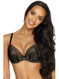 Dámská podprsenka značky Fantasy. Podprsenka je nevyztužená. Košíčky má hladké, v horní části jsou olemované. Uprostřed košíčků je stříbrná ozdoba se štrasovým kamínkem, která je našitá na ozdobné krajce mezi košíčky. Ramínka začínají z boční strany od košíčků a dále pokračují do širokých ramínek, která jsou lehounce vyztužená, aby se nikde nezařezávaly. Ramínka jsou délkově nastavitelná. Boční část je hladká. Zapínání je na dva háčky a ve třech řadách. Na boční straně podprsenky je našité stříbrné logo značky.
