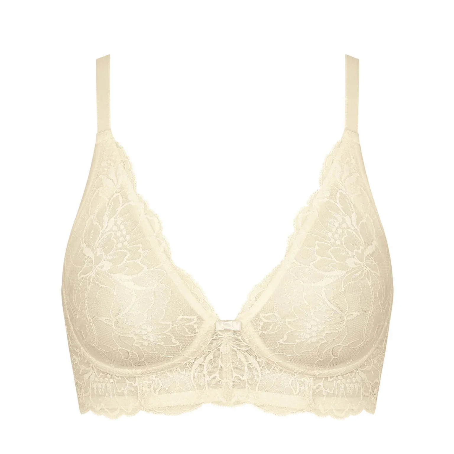 Svým vzhledem a střihem je tato podprsenka k nerozeznání od podprsenky s kosticemi, ale díky inovativně tvarovaným krajkovým košíčkům poskytuje svobodu a pohodlí podprsenky bez kostic