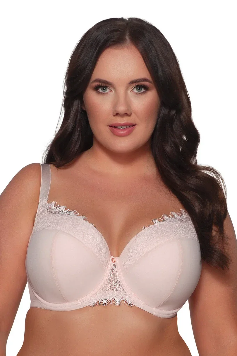 Biustonosz półusztywniony, miseczki w dolnych partiach wyścielone miękką pianką i transparentnym tiulem od góry zostały wykończone urokliwą koronką z rzęskami. Perfekcyjnie zebrane i uniesione piersi pozostaną ustabilizowane we właściwym miejscu, dzięki sprężystemu obwodowi i zdobnemu mostkowi. Odcień ciepłego, jasnego różu rozświetla koloryt skóry i pięknie prezentuje się na skórze – zarówno w biustonoszu, jak i finezyjnych figach. Poczuj wiosnę z delikatną Rossą!