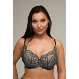 Odkryj wyjątkowy komfort i elegancję z naszym koronkowym biustonoszem push-up, który doskonale podkreśla kobiece kształty. Ten zmysłowy model został wyposażony w wyjmowane wkładki, co pozwala na indywidualne dopasowanie poziomu uniesienia biustu. Dzięki pionowym cięciom miseczek biust jest efektownie uniesiony i zaokrąglony, a całość prezentuje się niezwykle kobieco i stylowo. Delikatna koronka z kwiatowym wzorem w kolorze starego złota nadaje bieliźnie luksusowego charakteru, a głęboki odcień zieleni dodaje elegancji.