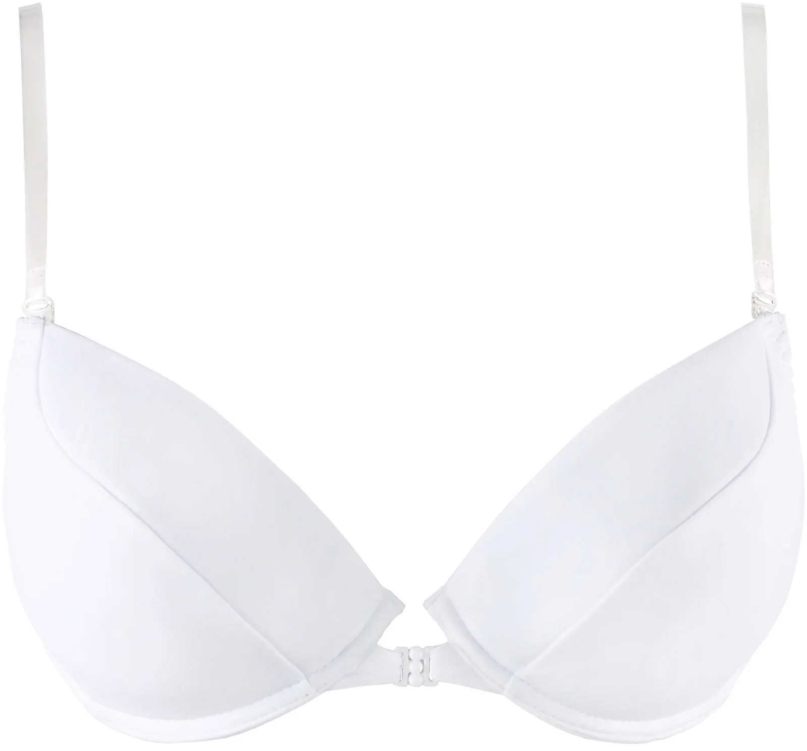 elegantní bílá podprsenka se silikonovými průhlednými zády - ideální pod vypasované oblečení s odhalenými zády. Zaručí vám dokonalý výsledek a maximální pohodlí. Podprsenka je vybavena vyjímatelnými push-up vložkami a odnímatelnými silikonovými ramínky.