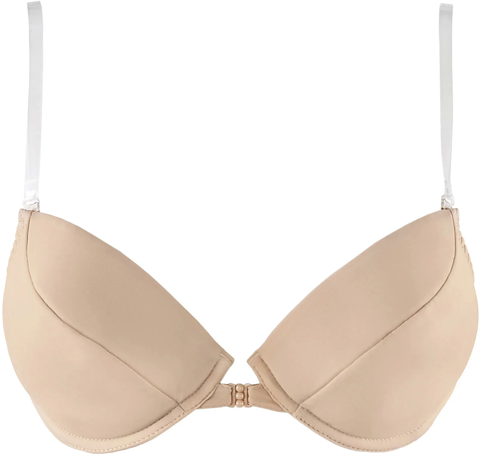 Elegantní béžová podprsenka se silikonovými, průhlednými zády - ideální do kombinací s oblečením s odhalenými zády. Zaručí vám vynikající vzhled a pohodlí. Podprsenka je vybavena vyjímatelnými push-up vycpávkami a odnímatelnými silikonovými ramínky. V kompletu se šňůrkami V-5798. Materiálové složení: Bavlna 33 %, Polyamid 33 %, Polyuretan 16 %, Polyester 11 %, Elastan 7 %