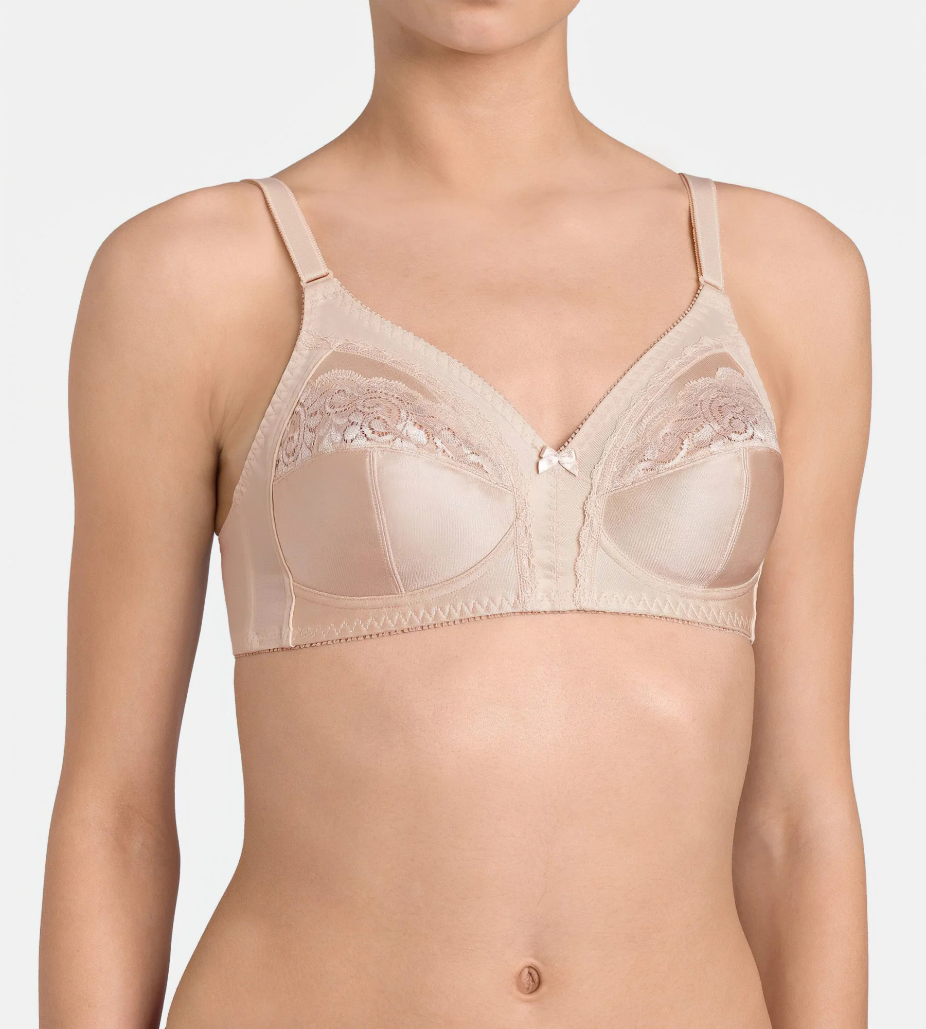 Nevyztužené košíčky z podpůrné, elastické textury s krajkovými vsadkami.