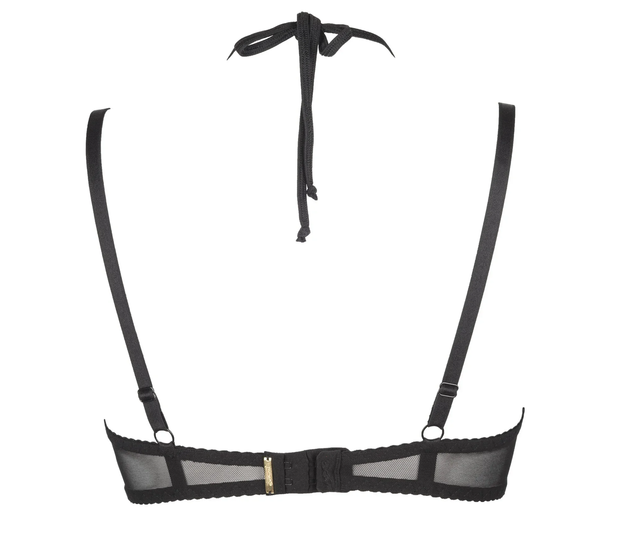 Černá podprsenka Noir V-6471, která vyzařuje dravý sex-appeal, zaujme zajímavým leskem, romantickou jemností krajky a průhledností tylové síťoviny. Celá souprava dokonale podtrhne krásu vašeho těla a nenechá od vás odtrhnout pohled. Zvláště když je efekt doplněn podvazkovým pásem V-6472 a tangy V-6478. Podprsenka se zavazuje za krkem a zapíná se na třístupňově nastavitelné háčky.