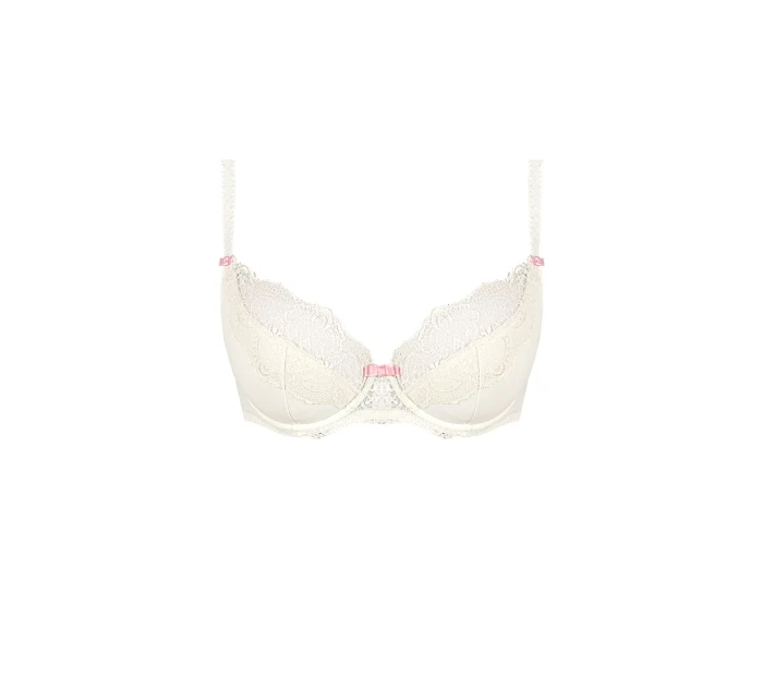 Krásná podprsenka v kávově krémovém odstínu. Je jemný a elegantní a působí mimořádně atraktivně. Spodní část košíčků je hladká, s kosticemi, a dokonale a výrazně zvedá a tvaruje poprsí. Ve výstřihu je romantické krajkové aranžmá. Polovyztužený střih s jemnou pěnovou podšívkou na vnitřní straně košíčků je vhodný zejména pro větší poprsí. Nádherná barva je skvělou alternativou k bílé.