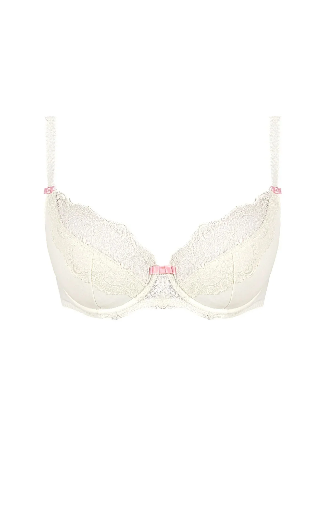 Krásná podprsenka v odstínu kávově krémové. Jemná a elegantní, působí mimořádně přitažlivě. Spodní část košíčků (dno) je hladká, s podšitím, dokonale nadnáší a pevně tvaruje poprsí. Ve výstřihu romantické, krajkové aranžmá. Polovyztužený střih, s jemnou pěnovou podšívkou na vnitřní straně košíčků, se osvědčuje zejména pro větší poprsí. Nádherná barva je skvělou alternativou k bílé.
