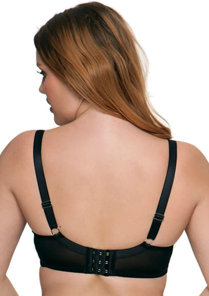 Krásná podprsenka Daily Dream CK4501 v černé barvě značky Curvy Kate je vyrobena z velmi příjemného materiálu. Podprsenka je opatřena pohodlnou všitou kosticí a vyztužena je jemným molitanem. Díky svému střihu skvěle pojme a vytvaruje i velké poprsí její majitelky. Košíček je členěn do tvaru T a vrchní část je lemována lesklou látkou. Obvod podprsenky je vyroben z jemného tylu, stejně jako střed podprsenky. Střed podprsenky je vyšší a zdobí jej malá mašlička. Ramínka jsou širší, posuvná a dobře drží tvar. Zapínání podprsenky je pohodlné a široké. Zapínání podprsenky je na tři háčky a na tři pozice.