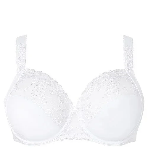 Podprsenka s kosticí s plným košíčkem z úpletu a výšivky.Tvar košíčků na spodní části pro optimální oporu a větší pohodlí.Třídílná konstrukce košíčku pro zakřivený tvar.Vyšívané horní části košíčků s kosticemi.Spodní část košíčků je podšitá bavlnou pro větší pohodlí a po stranách košíčků je vyztužená neprůhledným úpletem pro větší oporu. Vyšívaný střed předního dílu s vroubkovaným lemem, podšitý tuhým tylem. Baletní záda z pružného úpletu pro optimální podporu.Nastavitelná ramínka s guipure akcenty.