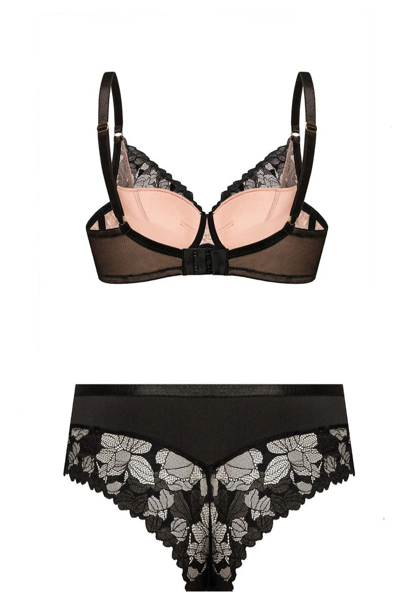 Zmysłowy biustonosz typu push-up BP20 to połączenie elegancji i komfortu w codziennym wydaniu. Wykonany z delikatnej, kwiatowej koronki, pięknie podkreśla dekolt, nadając piersiom ponętny kształt i subtelne uniesienie. Miękkie, bawełniane podszycie od wewnątrz gwarantuje wygodę noszenia przez cały dzień, a wyjmowane wkładki push-up pozwalają dopasować efekt do własnych preferencji. Regulowane, ozdobne ramiączka i boczne fiszbiny zapewniają idealne podtrzymanie biustu, a trzystopniowe zapięcie umożliwia precyzyjne dopasowanie obwodu. To biustonosz, który łączy kobiecość, styl i funkcjonalność – idealny zarówno na co dzień, jak i na wyjątkowe okazje.