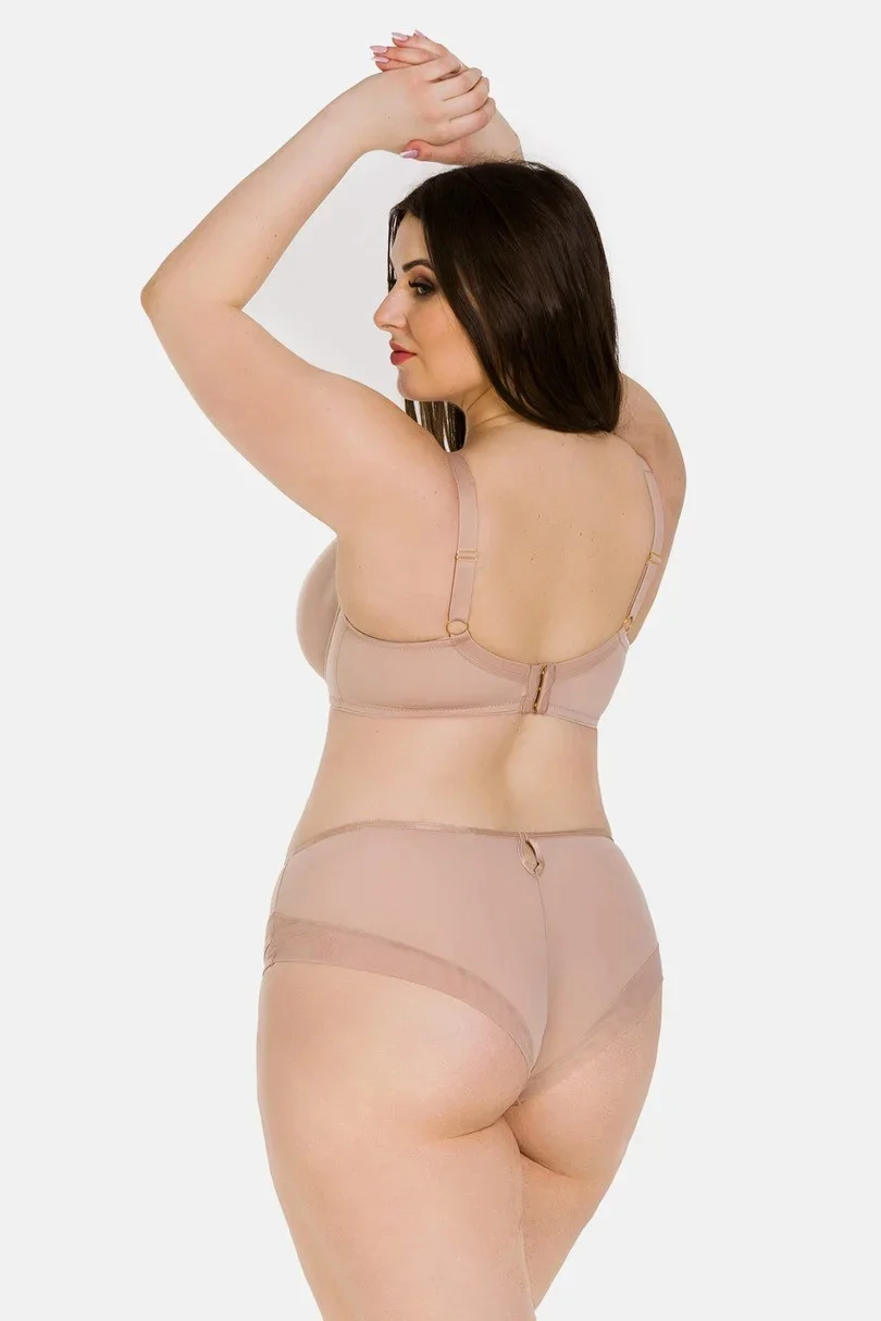 Podprsenka má navíc všitý tyl v oblasti hrudníku, který může ještě zvýšit komfort nošení. Uprostřed podprsenky je šperk, který jí dodává na estetice a eleganci. Košíčky jsou dále vyztuženy bočním panelem z tylu, který může poskytnout dodatečnou podporu a tvar poprsí.