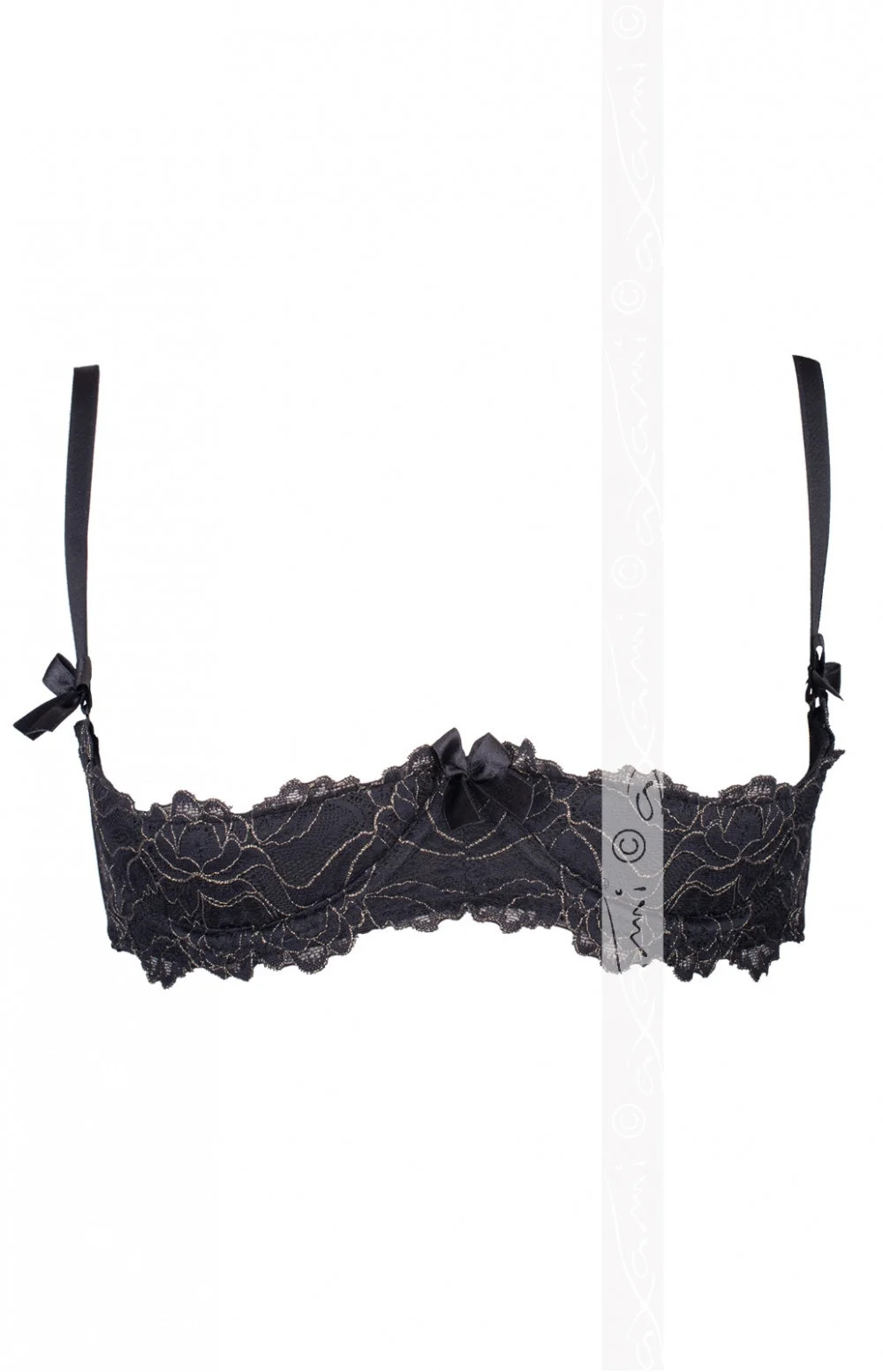Nápaditá, rafinovaná podprsenka peek-a-boo V-5891 Meteorite si získá pozornost a láká k doteku a vyzkoušení. Lesklé detaily a stuha hladká jako hedvábí tento model odlišují a elegantní střih jej činí žádoucím. Debonitová černá krajka se zlatou nití jej činí jedinečným a recherchovním. Materiálové složení: polyamid 58 %, bavlna 17 %, polyuretan 13 %, polyester 8 %, elastan 4 %