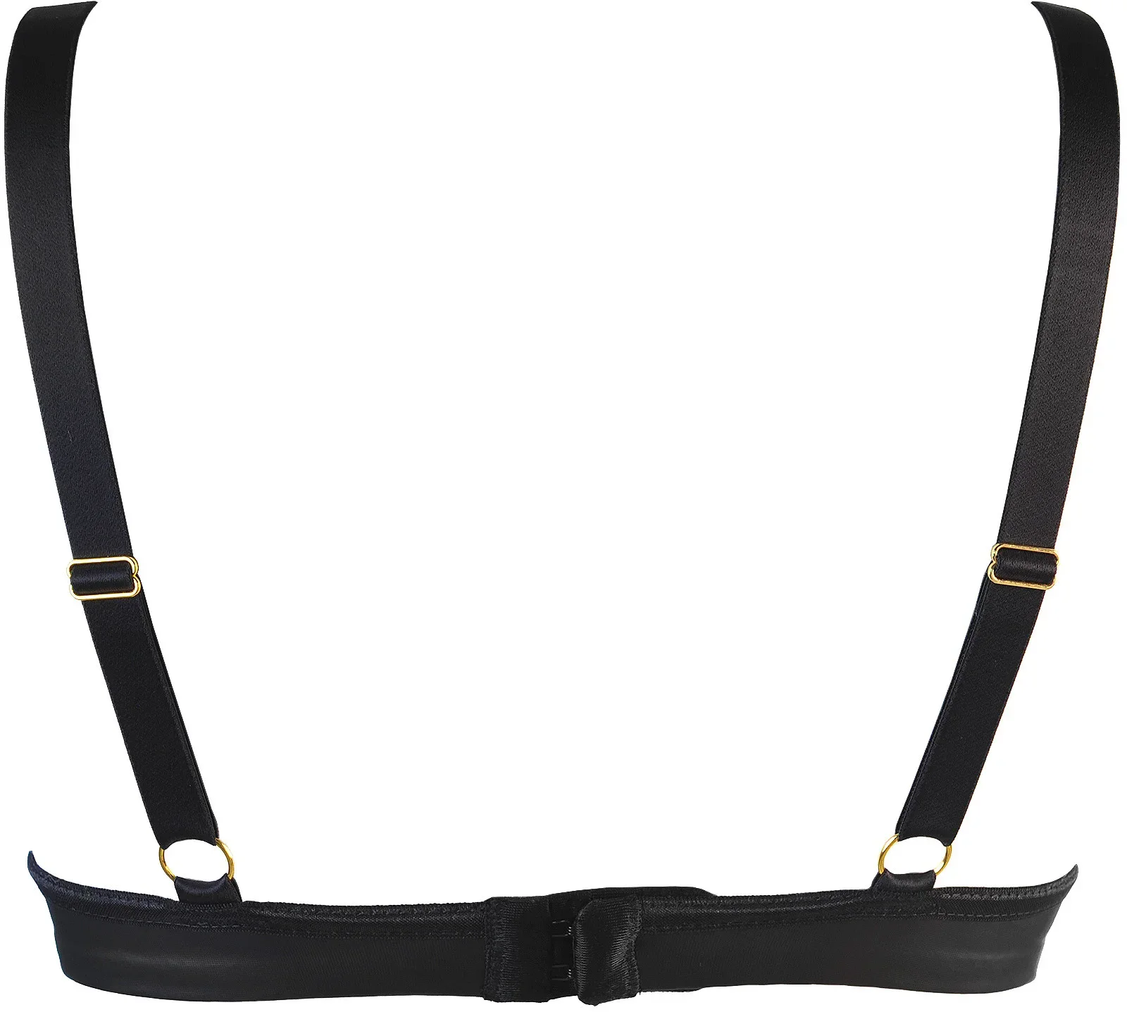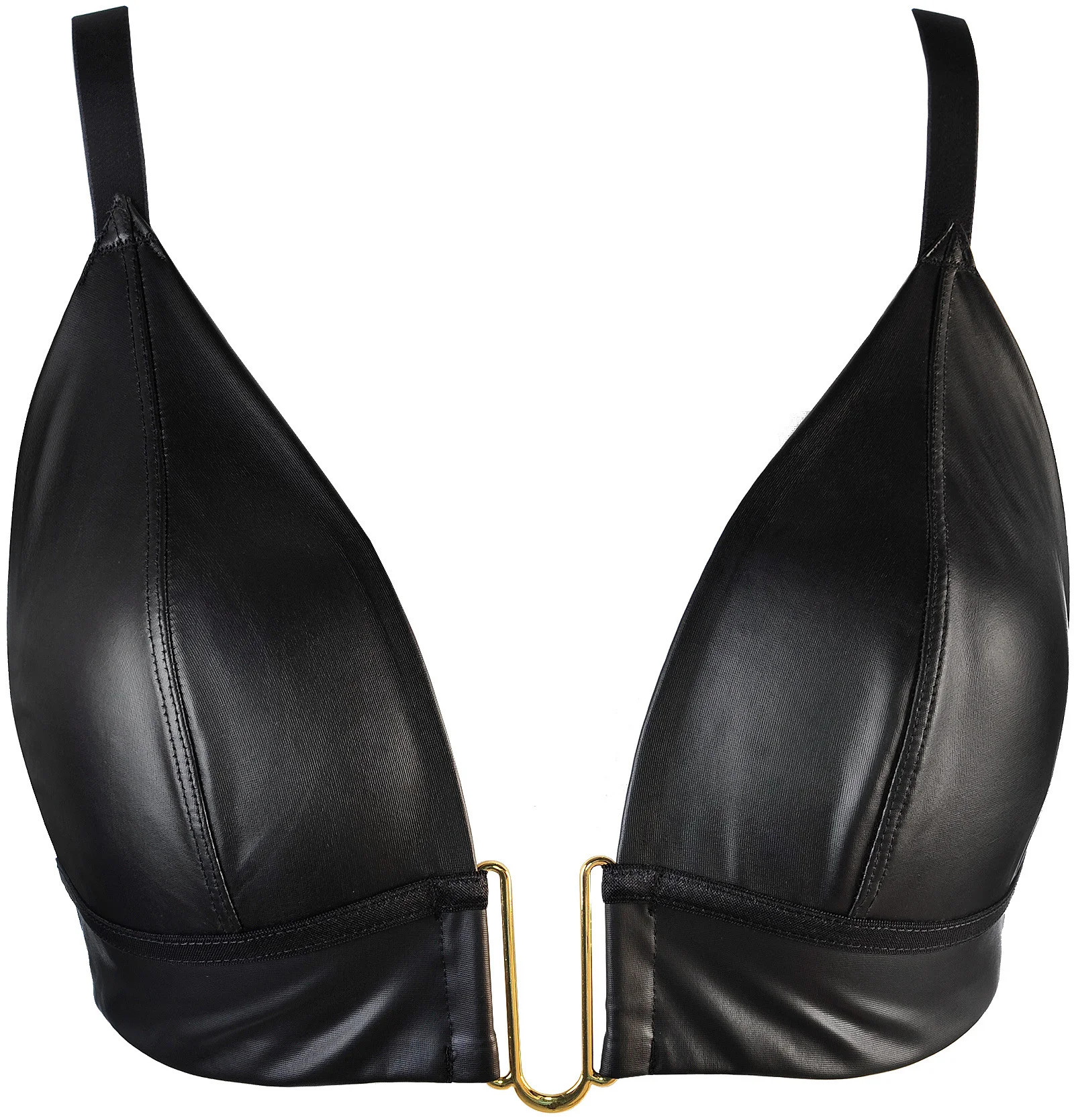 Fenomenální model, ve kterém budete připravena na každý večer, dokonalá měkká podprsenka z tenkého latexu, která se hodí pod večerní šaty a zároveň je krásnou ozdobou poprsí. Černá podprsenka má nastavitelná ramínka a nevyztužené košíčky, mezi nimiž je módní a svůdná kovová ozdoba ve tvaru písmene V. Model se zapíná na dvouřadové zapínání na háček a oko, ostatní doplňky jsou ve zlaté barvě.