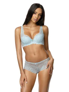 Rozkošná push-up podprsenka, která fenomenálním způsobem modeluje ňadra, dodává jim objem a pozvedá je. Košíčky jsou potaženy modrou látkou s hravými puntíky. Výstřih je zvýrazněn bohatě zdobenou krajkou. Unikátní konstrukce a kostice dodávají poprsí sexy vzhled, velkou výhodou jsou odepínací ramínka a vyjímatelné push-up košíčky. Za pozornost stojí také koketní mašlička uprostřed, která celek zajímavě doplňuje.