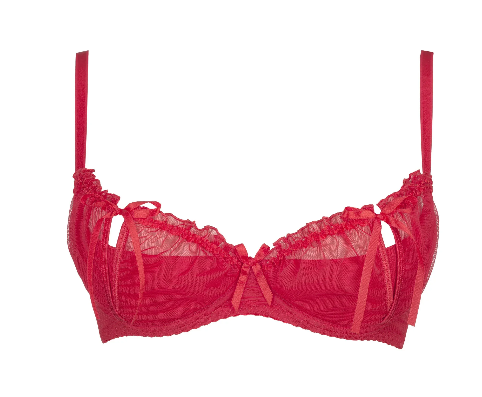 | Smyslná, vášnivě červená podprsenka V-8741 svádí vzrušujícími průstřihy košíčků. Jemné volánky ve výstřihu dodávají šatům koketnost, zatímco svůdná průsvitnost tylu umožňuje ještě více odhalit vaši ženskost. Podprsenka tvoří dokonalý svůdný komplet s podvazkovým pásem V-8742, tangy a tanga V-8748 a punčochy V-7084. Standardně nastavitelné a neodnímatelné ramenní popruhy. |
