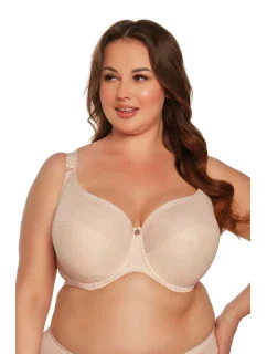 Polovyztužená podprsenka s kosticí a systémem rychlého zapínání určená pro novopečené maminky. Vyrobeno z měkkého úpletu v béžové barvě, podšité bavlnou. Košíčky jsou zdobené krajkou s krásným květinovým motivem. Rychle odepínací ramínka podprsenky umožňují kojení na požádání při zachování vysoké úrovně pohodlí pro kojící ženy.