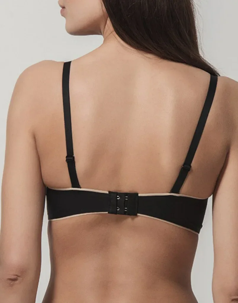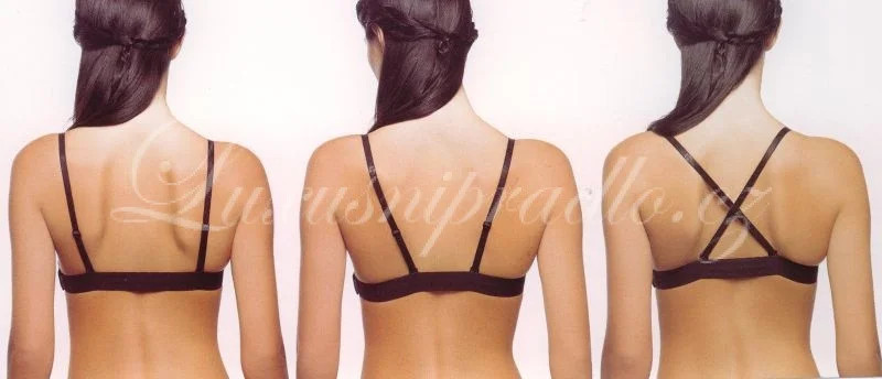variabilně nastavitelná ramínka (skryté "úchyty" po celém obvodu), takže lze uzpůsobit, aby pod oblečením nevykukovala, uchytit i křížem apod.