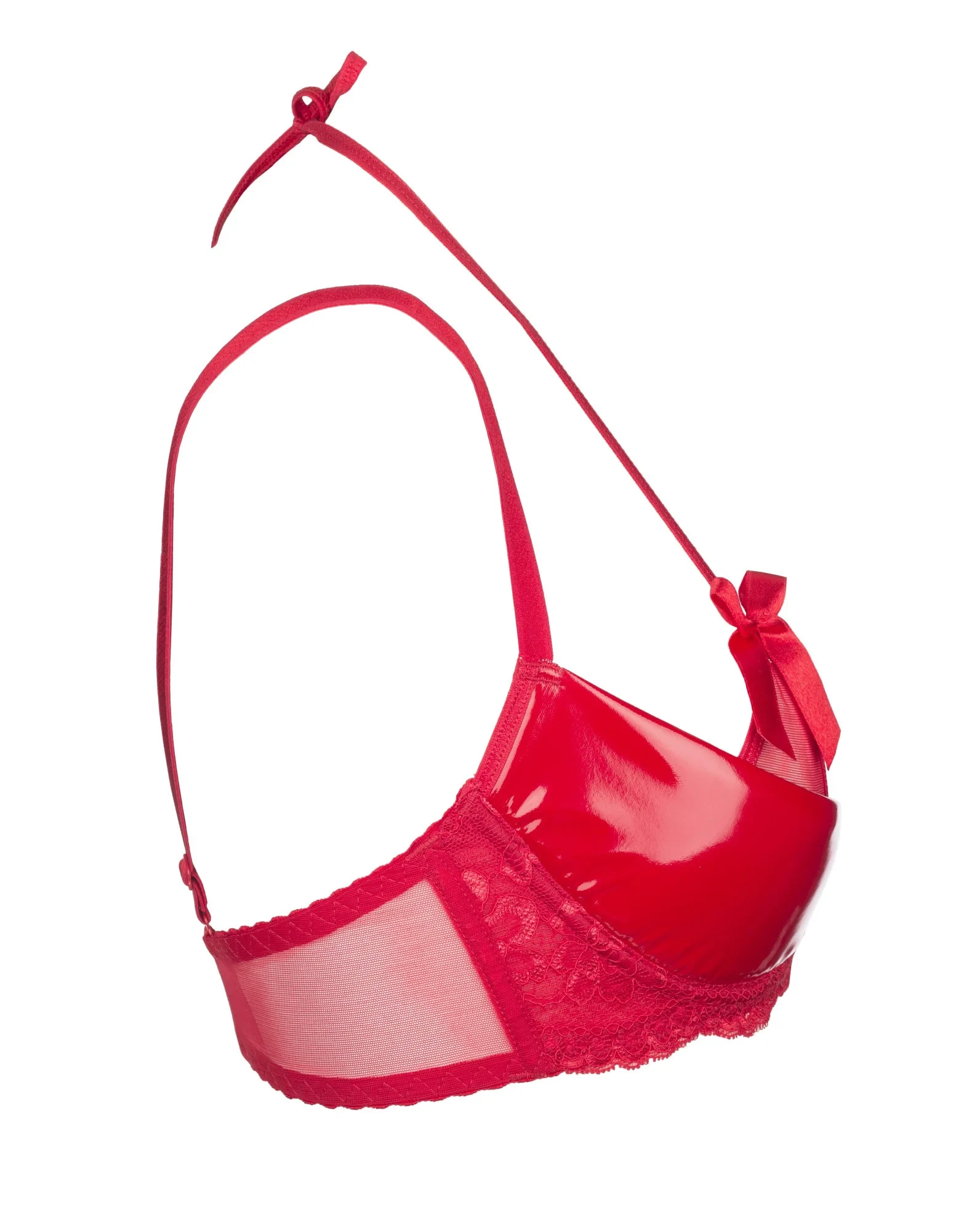 Červená podprsenka Rouge V-6481 zaujme svým fascinujícím leskem, romantickou jemností krajky a průsvitným tylem. Tento model dokonale podtrhne krásu vašeho těla... Zvláště v kompletu s podvazkovým pásem V-6482 a šňůrkou V-6488. Podprsenka má zapínání na háčky na zádech a dva páry ramínek - s pravidelnou regulací a zavazováním za krkem. Materiálové složení: polyester 51 %, polyuretan 18 %, bavlna 14 %, polyamid 13 %, elastan 4 %