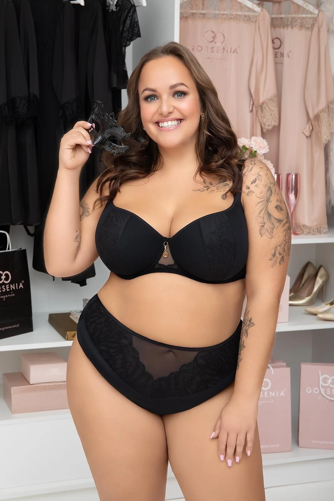 - určena pro ženy s malým, středním a velkým poprsím - poskytuje liftingový efekt a odhaluje poprsí - třídílné košíčky z pěny pokryté elastickým tylem a krajkou - zadní část z lycry pro velmi dobré přizpůsobení a oporu - boční velrybí kostice zabraňující vyhrnování - dvouřadý, třířadý a čtyřřadý systém zapínání na háčky s třístupňovým nastavením obvodu v závislosti na velikosti - ramínka nastavitelná ve třech šířkách: 14 (odepínací), 18 a 22 (neodepínací) - ramenní popruhy lze vzadu připnout, aby nebyly vidět pod více vykrojeným oblečením na zádech, takže nejsou vidět pod vykrojeným oblečením - vnitřní kapsy na vložky - kovové prvky v černé a stříbrné barvě (neobsahují nikl)