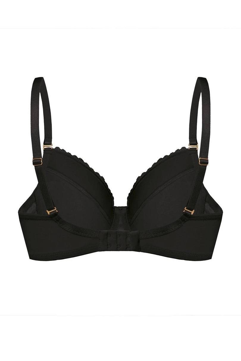 Biustonosz typu full cup to idealne połączenie elegancji i wygody, stworzone dla kobiet, które oczekują perfekcyjnego podparcia oraz pięknego kształtu biustu. Model wykonany jest z delikatnej czarnej koronki o roślinnym wzorze, która nadaje mu zmysłowego charakteru. Od wewnętrznej strony wykończono go miękką, oddychającą bawełną, zapewniającą wyjątkowy komfort noszenia przez cały dzień. Miseczki wyposażone są w wyjmowane wkładki push-up, dzięki czemu możesz łatwo dostosować efekt uniesienia do własnych preferencji. Konstrukcja BP25 oraz pionowe fiszbiny po bokach gwarantują stabilność, idealneEAN čárové kódy zboží jsou: