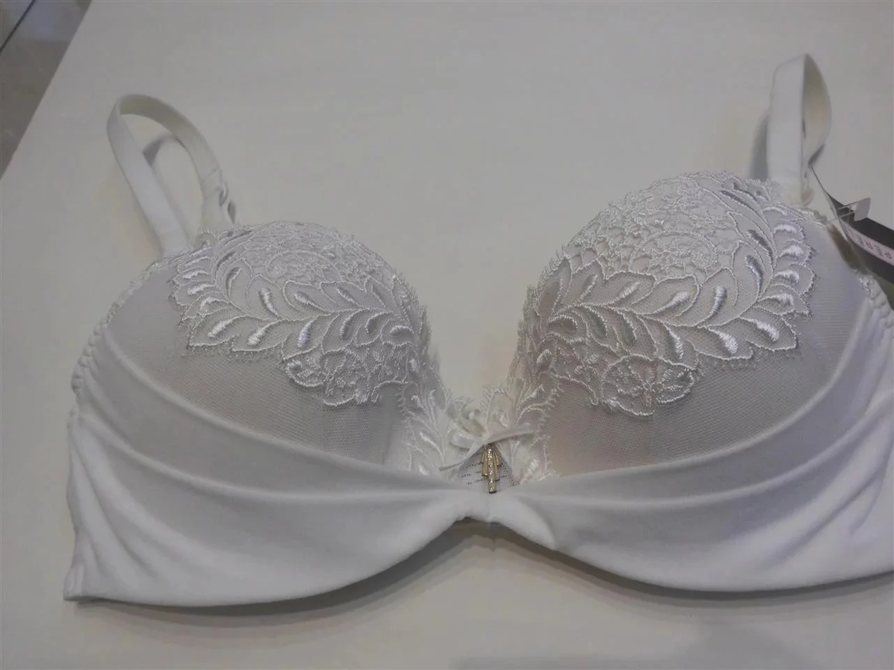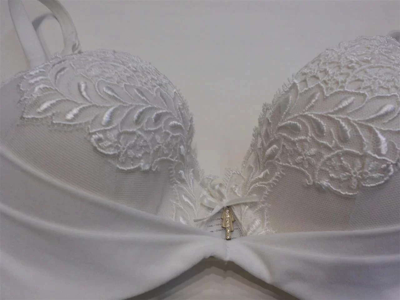 Luxusní krajková push - up podprsenka značky Simone Perele, zdobená řasením na spodním díle, která uspokojí velmi náročné klienty, složení 55% polyuretan, 37% polyester, 5% polyamid, 3% elastan.
