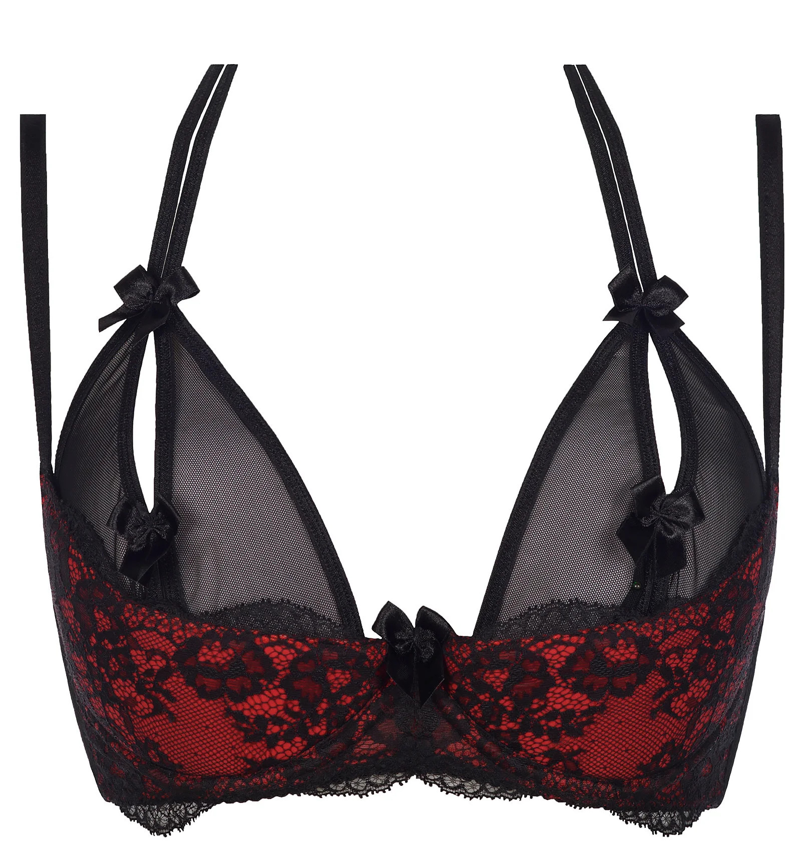Černé květy rozkvétají rafinovanou výšivkou na červených košíčcích podprsenky peek-a-boo Tomarillo Sorbet V-7791. Odvážný střih košíčků odhalí krásu vašich prsou. Odnímatelná ramínka vám umožní zdůraznit vaše ženské atributy.....