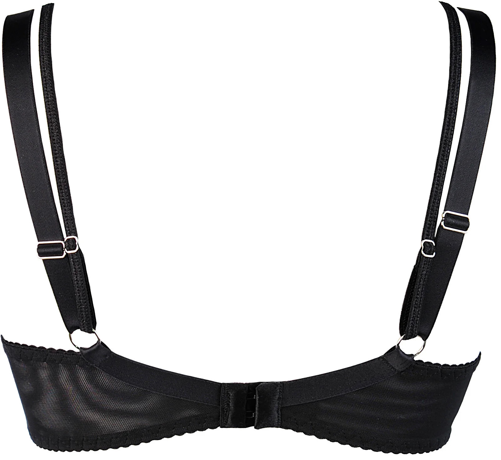 Nápaditý a úchvatný model podprsenky, který rozhodně nezůstane bez povšimnutí. Bohatost černo-modrých výšivek se prolíná s jedinečným třpytem, který se při každém pohybu třpytí a odhaluje nové odstíny. Model má měkké nevyztužené košíčky, výztužnou kostici a ozdobný kroužek mezi prsy. Zapíná se na dva háčky a má neodepínatelná, nastavitelná ramínka. Boky mají kostice a zadní část je z pevného černého tylu. Mezi další ozdoby patří ramínka vedoucí přes prsa a podél ramínek. Materiálové složení: polyamid 98 %, elastan 2 %