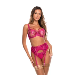 Okouzlující a lesklý model měkké podprsenky v třpytivé fuchsiové barvě je absolutním hitem pro nadcházející teplou sezónu! Tento model, vyrobený z bohatě vyšívané květinové krajky v kombinaci s jemným tylem na zádech, vám poskytne nejvyšší komfort při nošení v kombinaci s nejmódnějšími stříbrnými doplňky. Podprsenka má neodepínací, nastavitelná ramínka a ozdobné pásky zdobící prsa a ramena. Zadní část podprsenky se zapíná na dvouřadové zapínání na háčky s regulací. Materiálové složení: polyester 56 %, polyamid 42 %, elastan 2 %