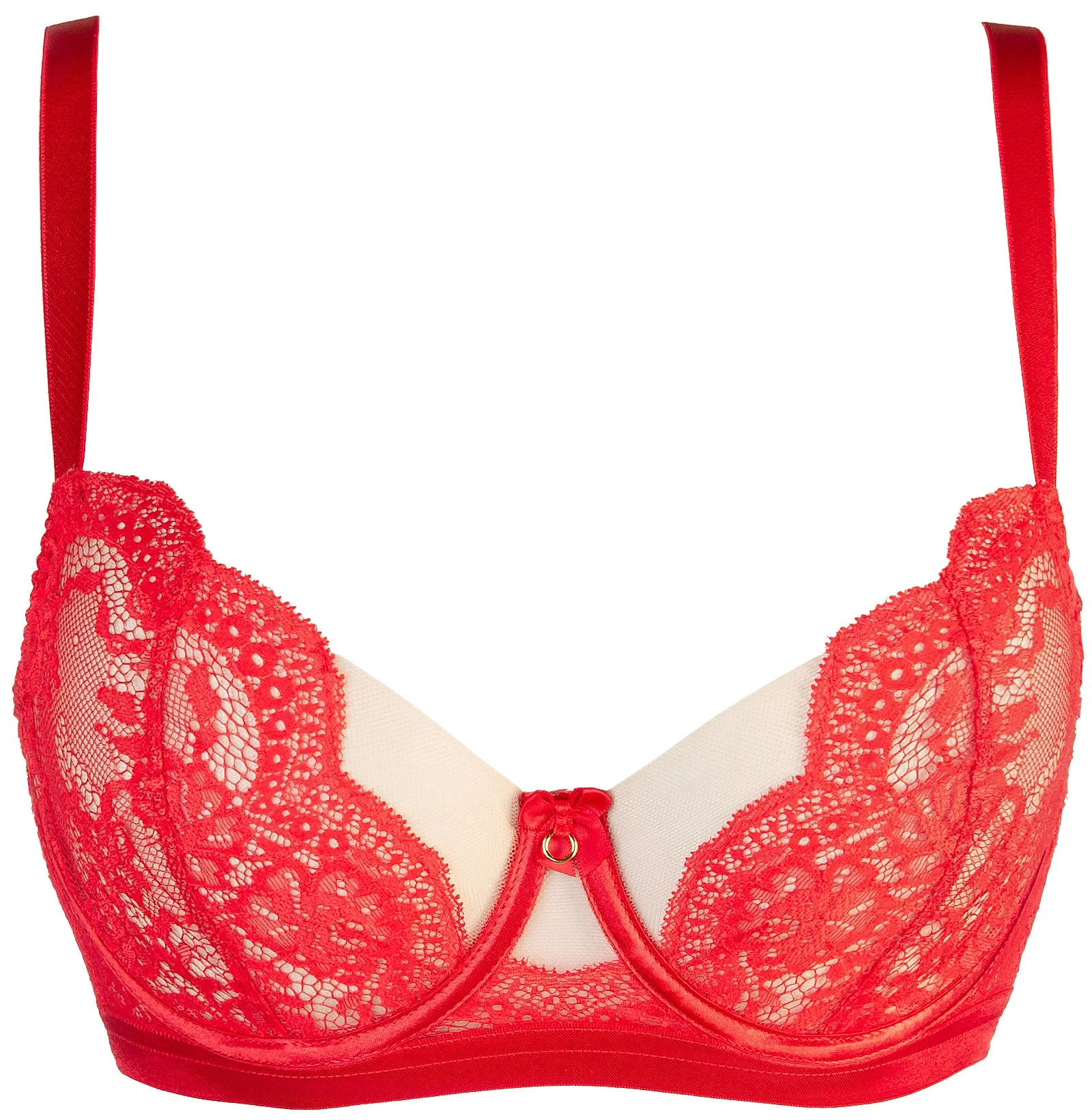 V našem nejnovějším červeném kompletu V-10721 se budete cítit jako svůdná diva, tento model byl vytvořen pro ženy, které chtějí objevovat a prožívat rozkoš, lehký tyl na košíčcích v kombinaci s půvabnou krajkou zvýrazní a pozvedne vaše poprsí, podprsenka má zabudovaný drátek pro stabilitu .záda v tomto modelu jsou vyrobena z lehkého a příjemného tylu, zapínání na dvouřadový háček, všechny doplňky ve zlaté barvě.