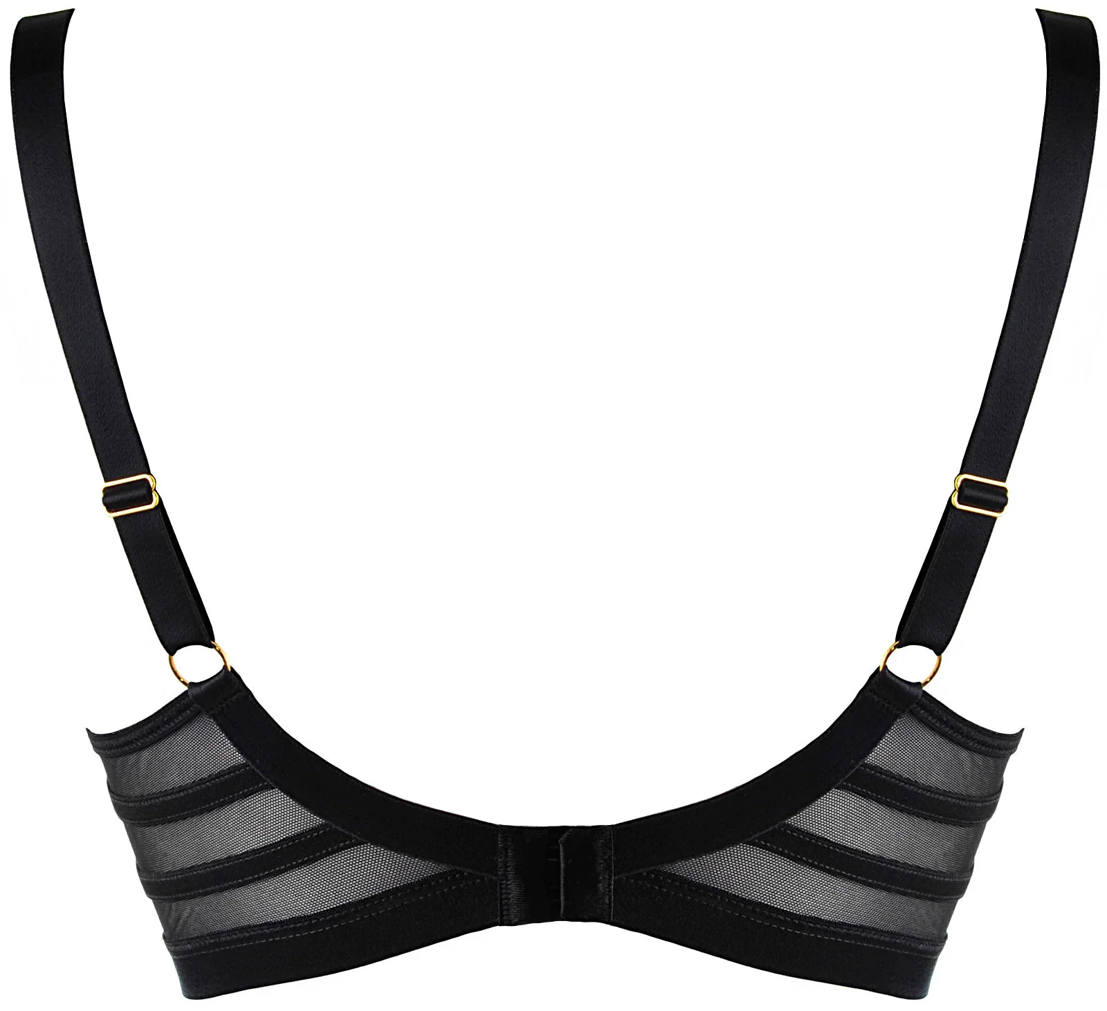 Tento model má neodnímatelné popruhy, které jsou odolné a stabilní. Podprsenka je navíc zdobená zlatými ozdobami, které jí dodávají elegantní a šik nádech. Díky třístupňovému nastavení zapínání na háčky a oka můžete podprsenku přizpůsobit svým individuálním preferencím a zajistit si správné padnutí.