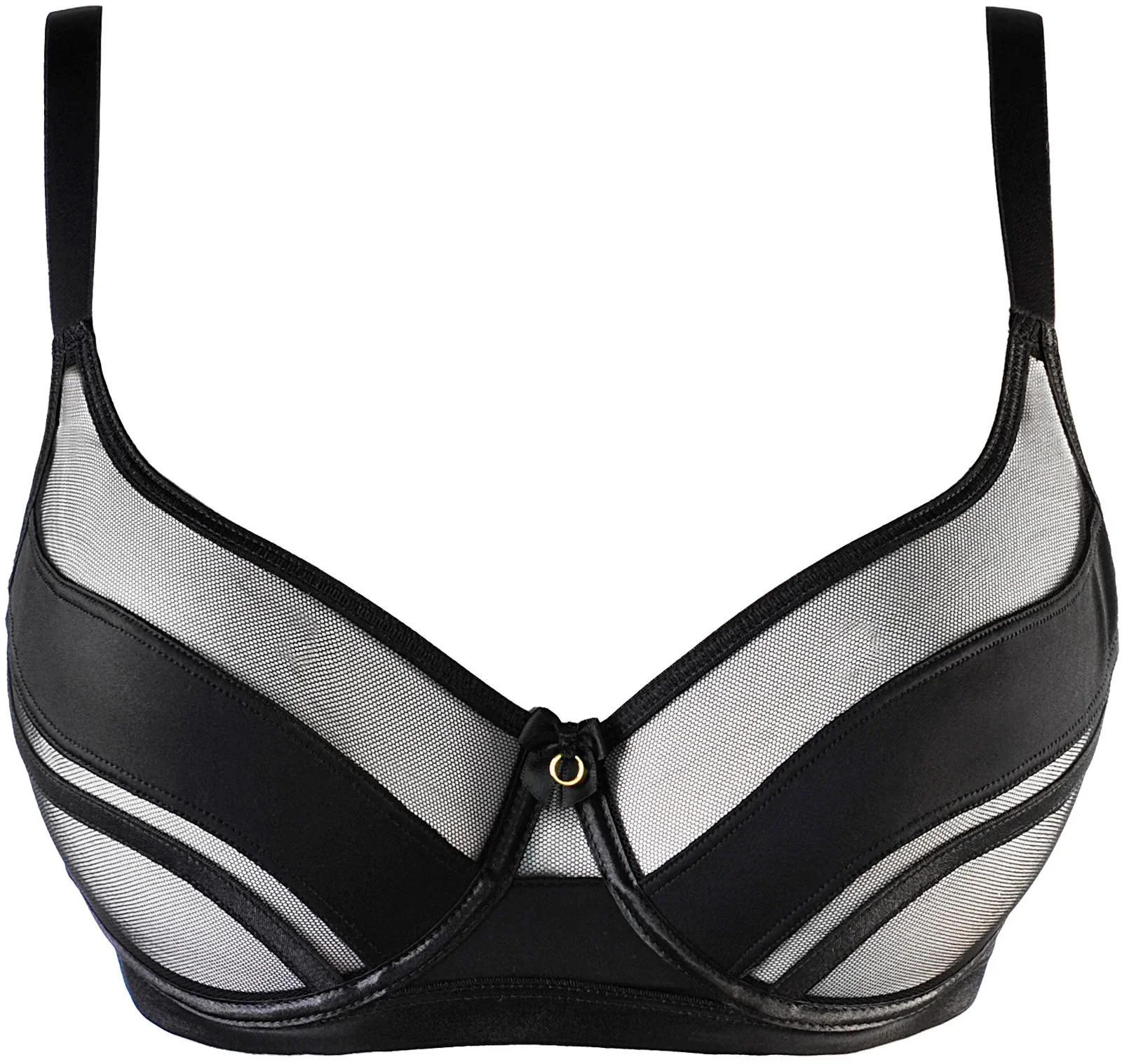 | Nový model měkké podprsenky je klasický i přizpůsobený, takže se hodí jak na formální vycházky, tak na každodenní nošení. Podprsenka je velmi pohodlná a stabilní pro celodenní pohodlí. Její měkké košíčky jsou vyrobeny ze stabilního tylu, který drží tvar prsou. Zadní část podprsenky je vyrobena z pružného a elastického béžového tylu pro větší pružnost. Překřížení zadní strany černými saténovými proužky různé šířky vytváří jedinečný vzor, který dodává stylingu zvláštní nádech. |