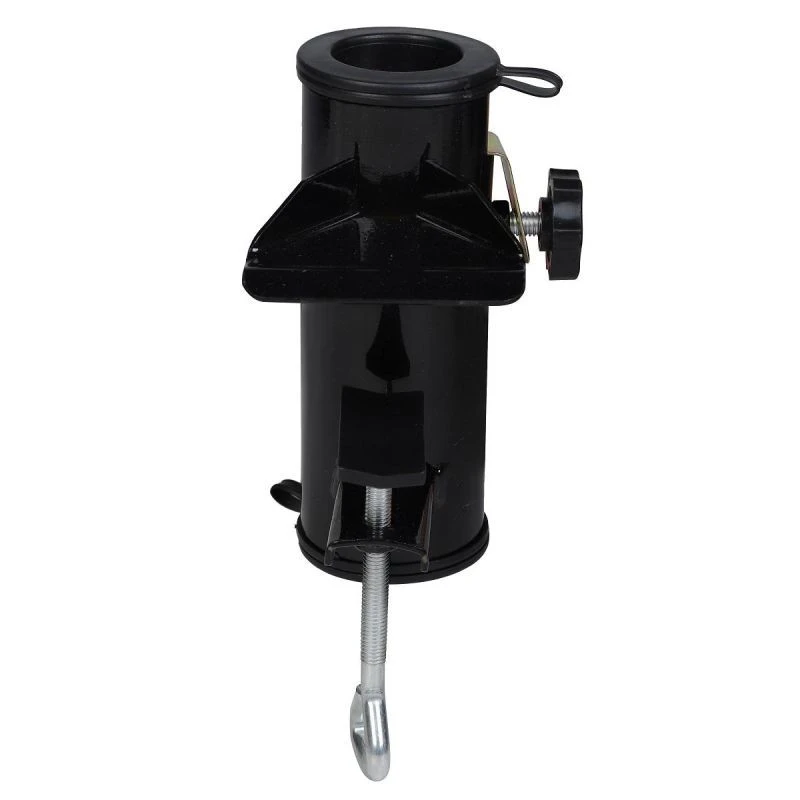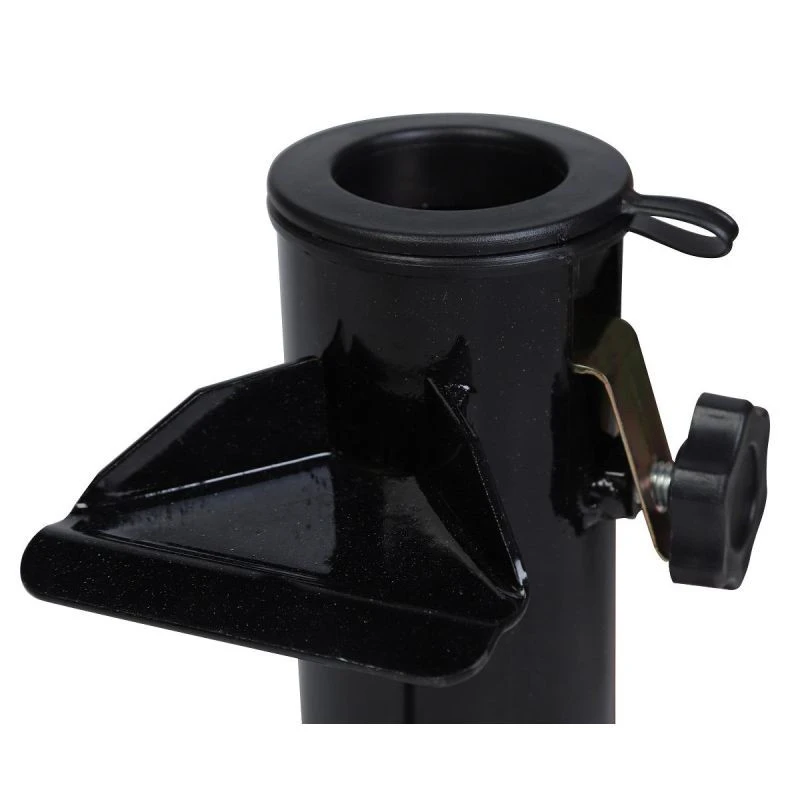 Naše základna je univerzální. Umožní vám připevnit nejen deštník, ale také vlajku nebo jiné předměty s tyčí na balkonové zábradlí, na jakékoli madlo zábradlí nebo na desku stolu.