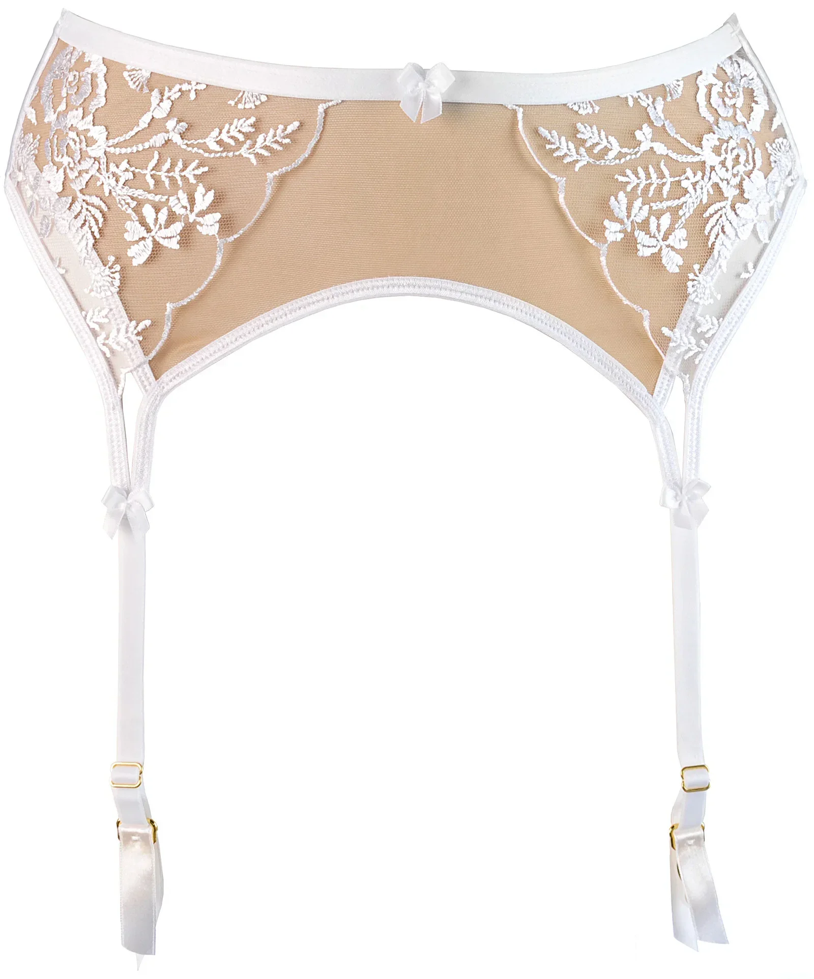 Víceúčelová bílá souprava podvazkového pásu s podprsenkou V-10781 vás překvapí, jakmile si ji obléknete. Sametový tyl obepíná boky a hýždě a krásně jemná výšivka na přední straně spadá na břicho, což působí lehce. S tangy V-10788 se budete cítit božsky a vytvoříte si jedinečný "look". Pás má boční kostice a podvazkový systém, pokud jej chcete kombinovat s elegantními punčochami.