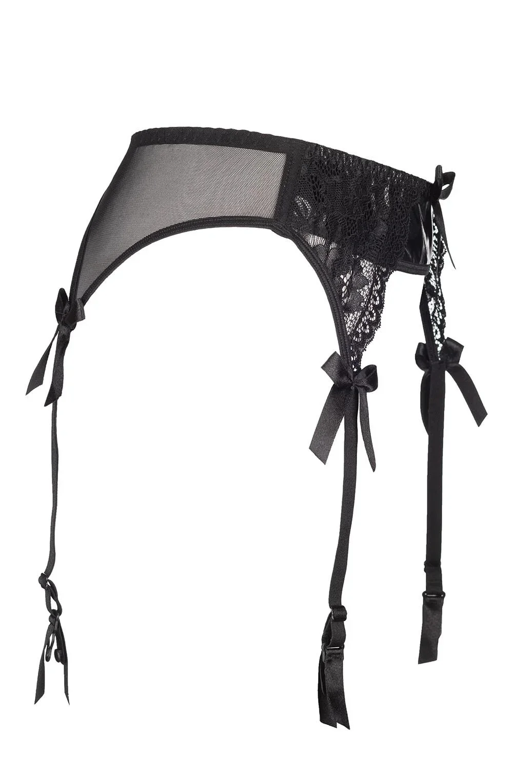 Když chcete vypadat úchvatně, sáhnete do šatníku po elegantním a vzrušujícím kousku oblečení, podvazkovém pásu Noir. Vyrobeno z průhledného síťovaného tylu a lesklého materiálu, zdobeného jemnou krajkou s květinovým ornamentem. Ramínka jsou zdobena drobnými saténovými mašličkami. Do sady doporučujeme tanga Axami V-6478 a podprsenku V-6471.