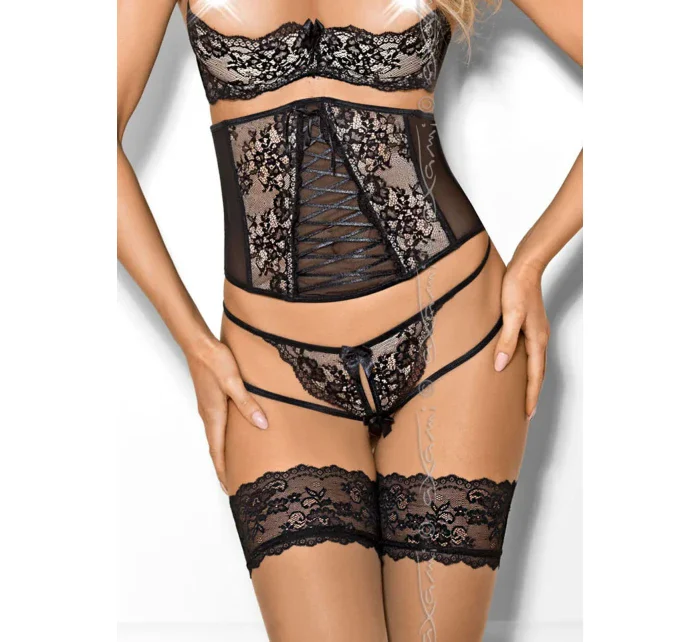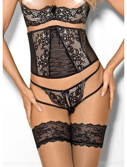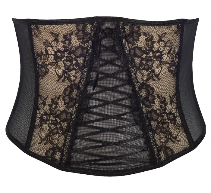 polokorzet Peanut Tarte V-7842 dokonale zdůrazní štíhlost vašeho pasu a oblost boků. Vzor černé krajky na béžovém pozadí podtrhne vaši jedinečnost a korzetové vázání je poklonou vaší ženskosti. Pásek se zapínáním na suchý zip.