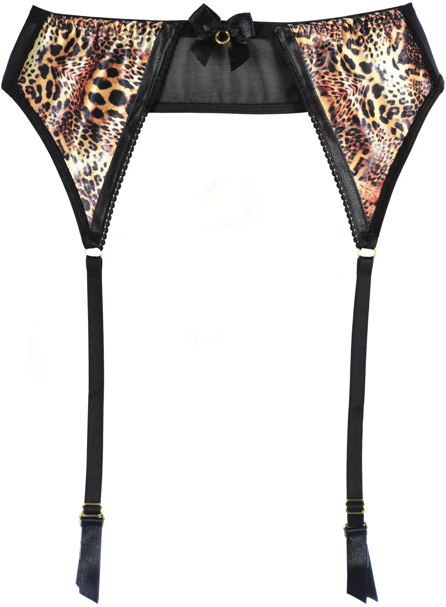 Koketní a fenomenální podvazkový pás V-10402 se zvířecím motivem doplní váš vzhled, zvolte divokost přírody a nechte se společně unášet svými nejniternějšími touhami! Model je vyroben z potištěného mikrovlákna a černého jemného tylu. Pás má charakteristické svislé pruhy pro uchycení punčoch, zapíná se vzadu na dvojitý háček a očko. Materiálové složení: Polyamid 96 %, elastan 4 %
